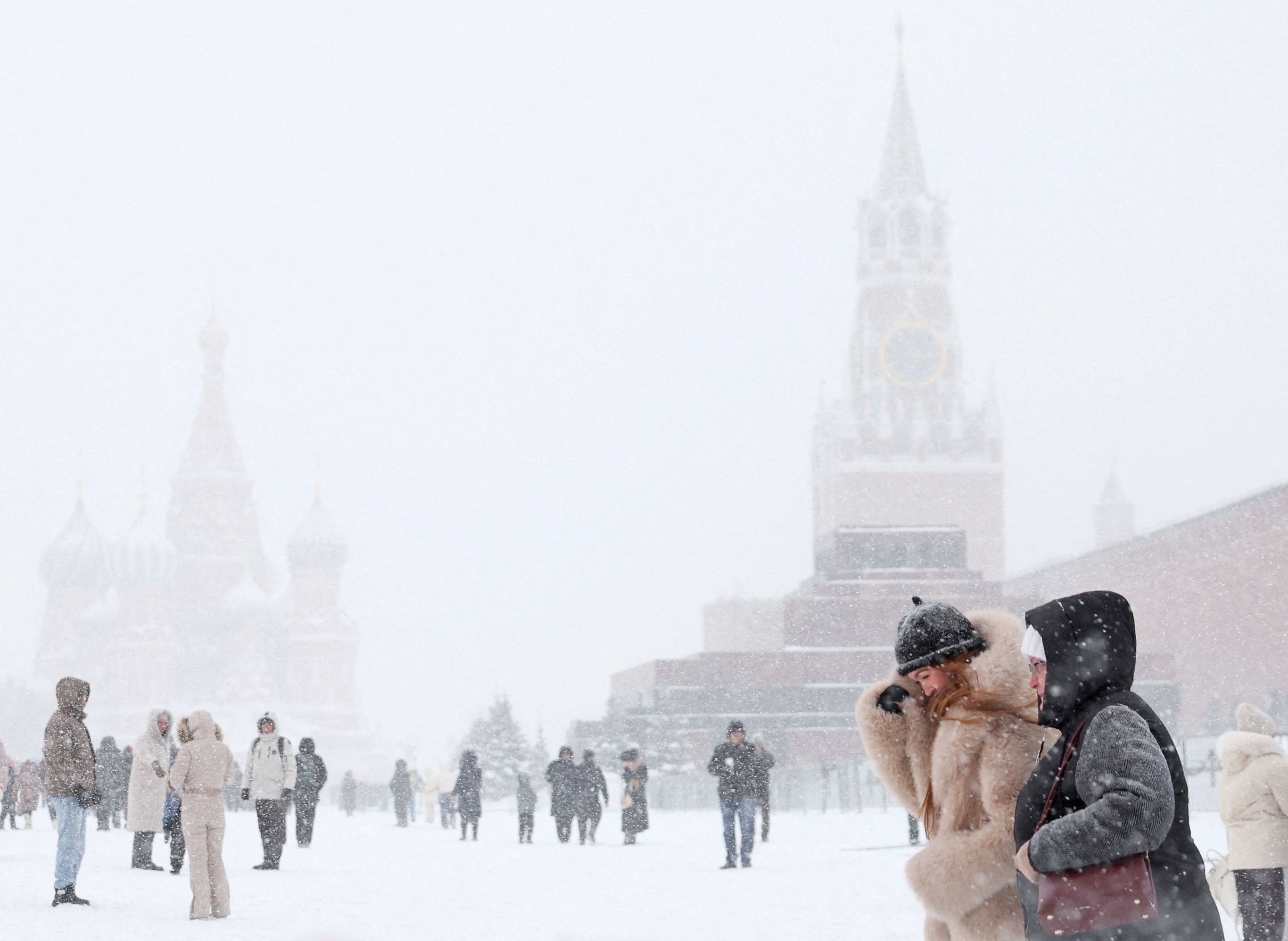 人们在雪中游览红场,莫斯科。1月9日,俄罗斯首都莫斯科遭遇56年来最强降雪天气,24小时降雪量达22毫米,相当于月平均降雪量的42%,部分地区积雪深度达到64厘米。莫斯科周边四座主要机场至少313个航班延误或取消,其中谢列梅捷沃国际机场单日清理积雪量超过100万立方米。莫斯科市政府已出动13万人和1.5万台设备参与除雪工作。摄影师:Ramil Sitdikov