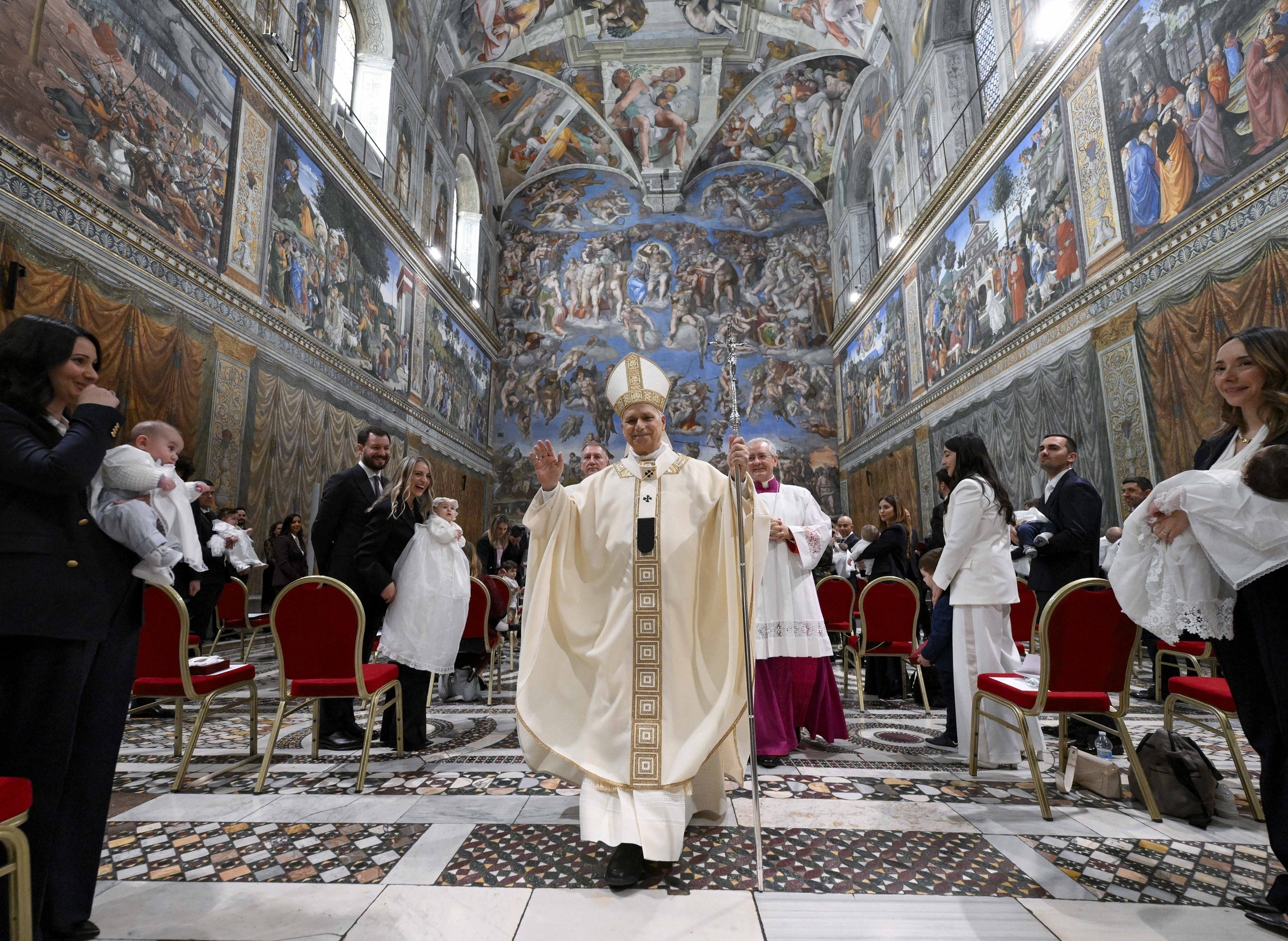 罗马教宗良十四世在西斯廷教堂主持「主受洗节」施洗仪式,梵蒂冈。1月11日是天主教「主受洗节」,罗马教宗良十四世当天按传统亲自为20名婴儿施洗,受洗婴儿均为梵蒂冈工作人员的子女。天主教主受洗节于每年1月6日主显节后的第一个周日庆祝,标志着圣诞期的结束。罗马教宗若望保禄二世于1981年开设在主受洗节亲自为婴儿施洗的传统,迄今已延续超过45年。摄影师:Vatican Media