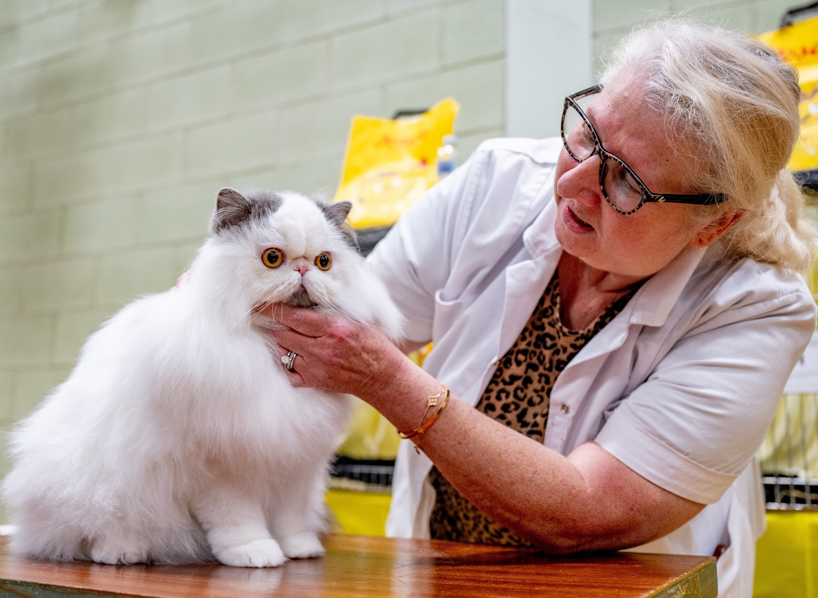 第38届英国什罗普郡锦标赛猫展,一只蓝白波斯猫(Persian cat)获得「全场最佳」(Best In Show)荣誉,沃尔索尔。2月7日,2026年什罗普郡赛级猫展在布洛克斯威奇中心举行,这是英国猫咪管理委员会(GCCF)认证的专业猫咪选美赛事,每年2月第一个周六举行,比赛分为成年组、幼猫组、绝育组等类别。国际爱猫联合会(CFA)报告显示2025年全球最受欢迎的五个纯种猫品种分别是缅因猫、布偶猫、波斯猫、异国短毛猫、德文卷毛猫。摄影师:Shirlaine Forrest