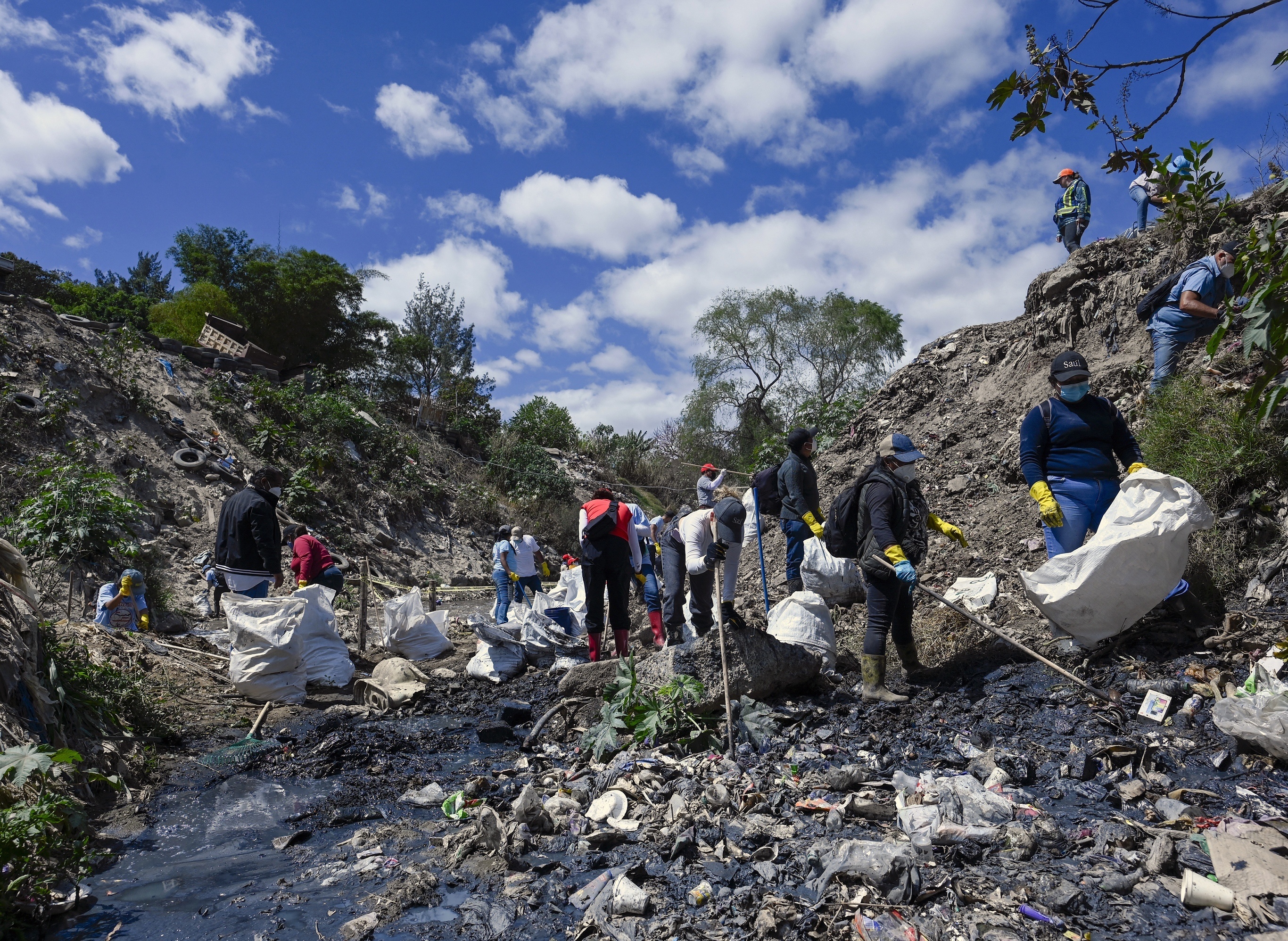 危地马拉志愿者在拉斯瓦卡斯河道清理塑料垃圾迎接「世界水日」,奇瑙特拉。3月22日是联合国第34个「世界水日」,本年度主题为「水与性别」,呼吁采取行动确保女性在水资源决策中拥有平等的话语权、领导力和机会。联合国报告指出,全球约有27.1%女性无法获得安全管理的饮用水服务,9.5%女性生活在高度或极度紧张的水环境中,约14%的国家缺乏机制确保女性能够平等地参与涉水决策和水资源管理。摄影师:Johan Ordonez