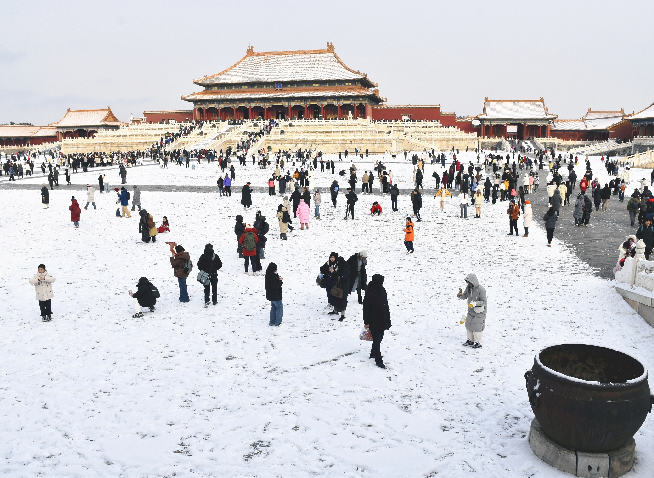 游客们在雪中游览北京故宫。1月19日,中国国家统计局公布2025年经济和社会发展核心数据,初步核算全年 GDP 达到140.2万亿元,同比增长5.0%,实现年初设定的增长目标;全年 CPI 与上年持平,城镇调查失业率平均值为5.2%,居民人均可支配收入43377元,比上年增长5.0%。2025年中国新出生人口792万人,死亡人口1131万人,总人口为14亿489万人,减少340万人,人口自然增长率为-2.41‰,连续第4年录得负增长。摄影师:iDaily Media