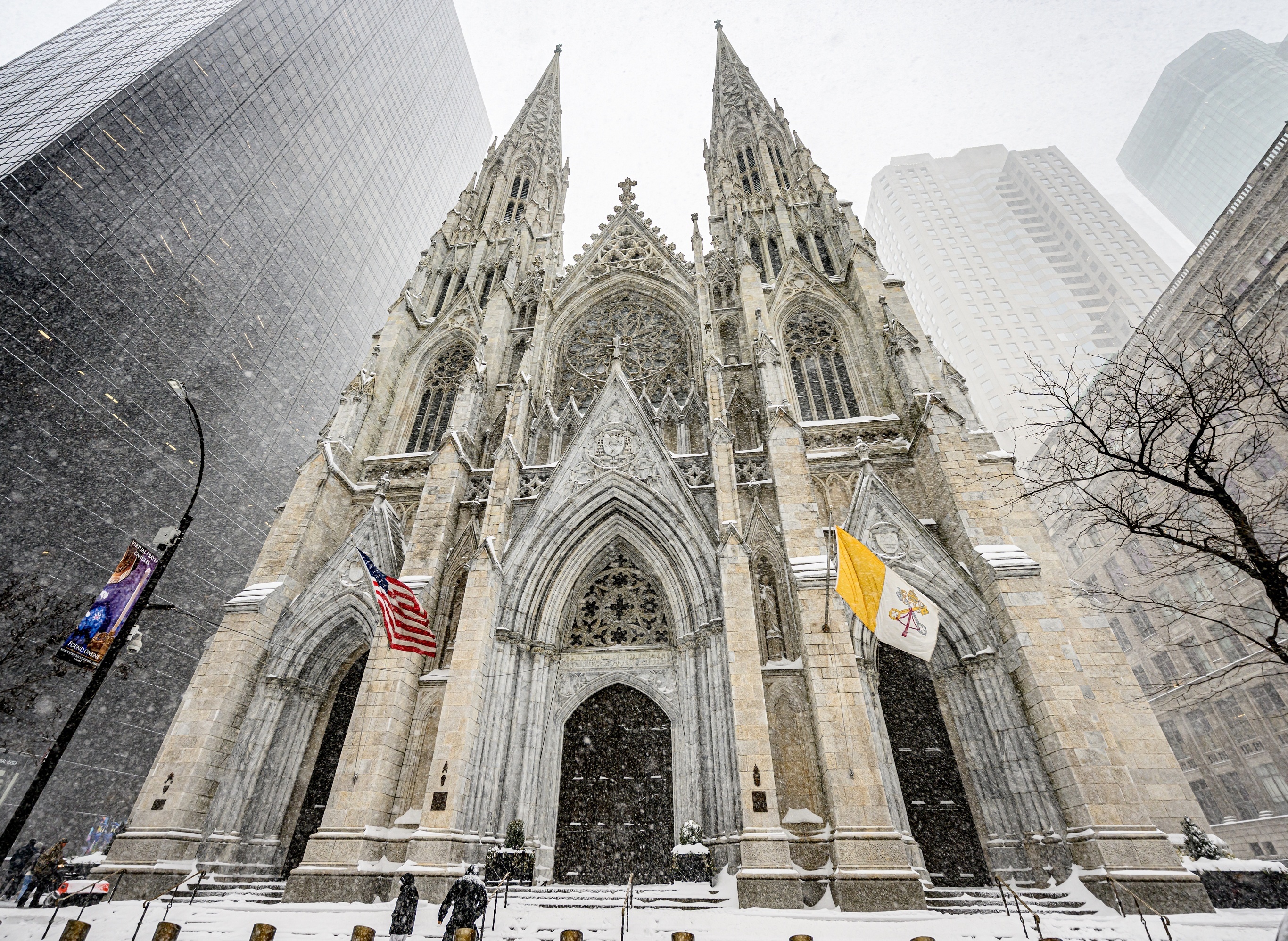 纽约圣帕特里克大教堂被大雪笼罩。1月24日,美国南部及东北部地区遭遇新一轮冬季风暴侵袭,全美24个州已宣布进入紧急状态,受影响人口超过2.45亿,暴雪和冻雨天气导致超过100万户家庭停电,逾1.7万个航班被取消,创下新冠疫情后的最高纪录。纽约市当天最低气温降至-9℃,累积降雪量达到44厘米,全市所有公立学校停课或改为线上授课。摄影师:Roy Rochlin