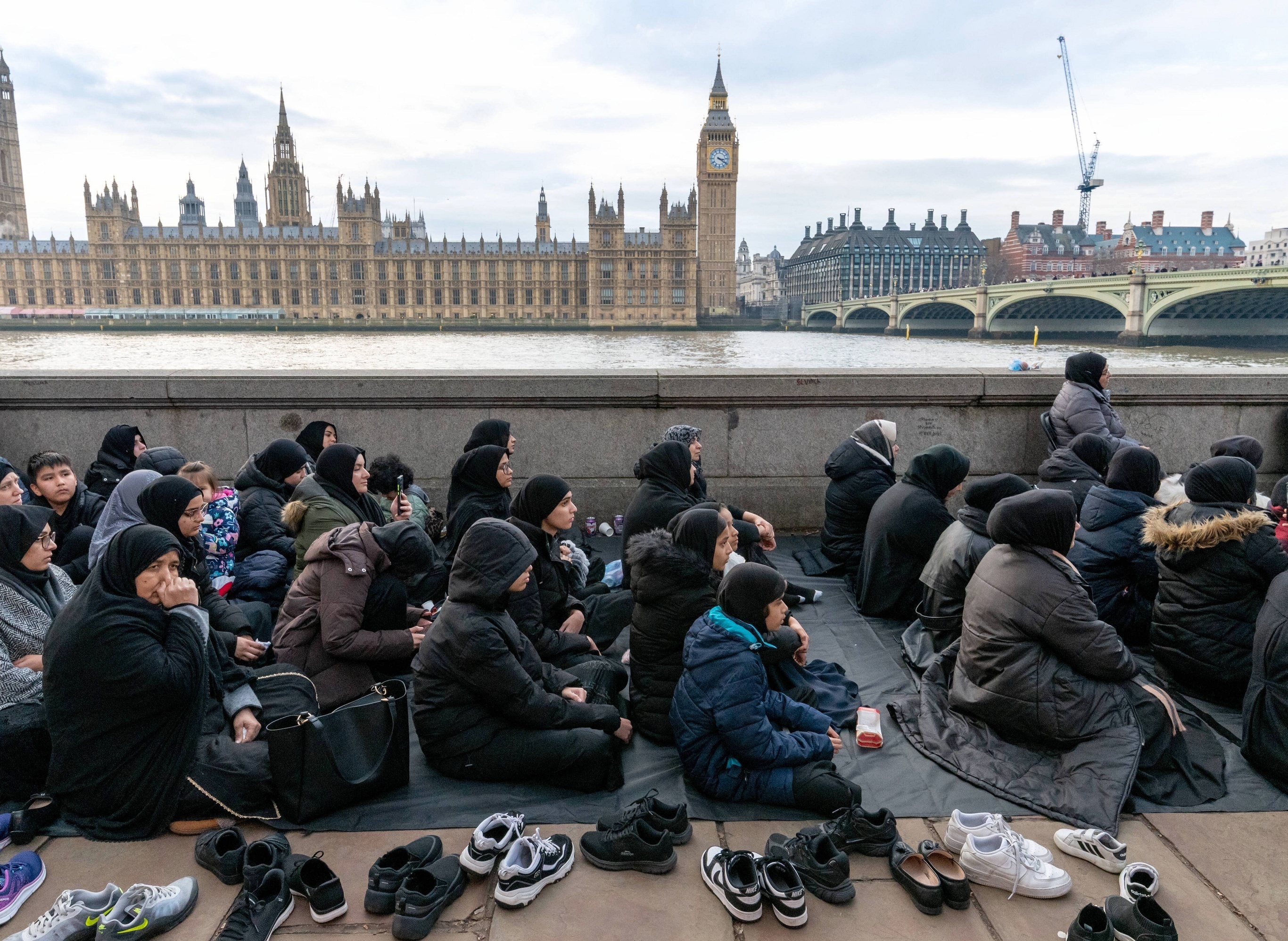 英国什叶派穆斯林在威斯敏斯特桥上参加纪念第七任伊玛目 Musa al-Kazim 殉难的活动,伦敦。1月18日,英国什叶派穆斯林在伦敦威斯敏斯特举行传统仪式,纪念公元799年什叶派伊玛目 Musa al-Kazim 在狱中殉难,具体方式包括通过捶胸以示哀悼。伊斯兰教现为英国第二大宗教,仅次于基督教,该国境内穆斯林人口约400万,占总人口的6%;伦敦是英国最大的穆斯林聚居城市,居住着全国15%的穆斯林。摄影师:Andrea Domeniconi