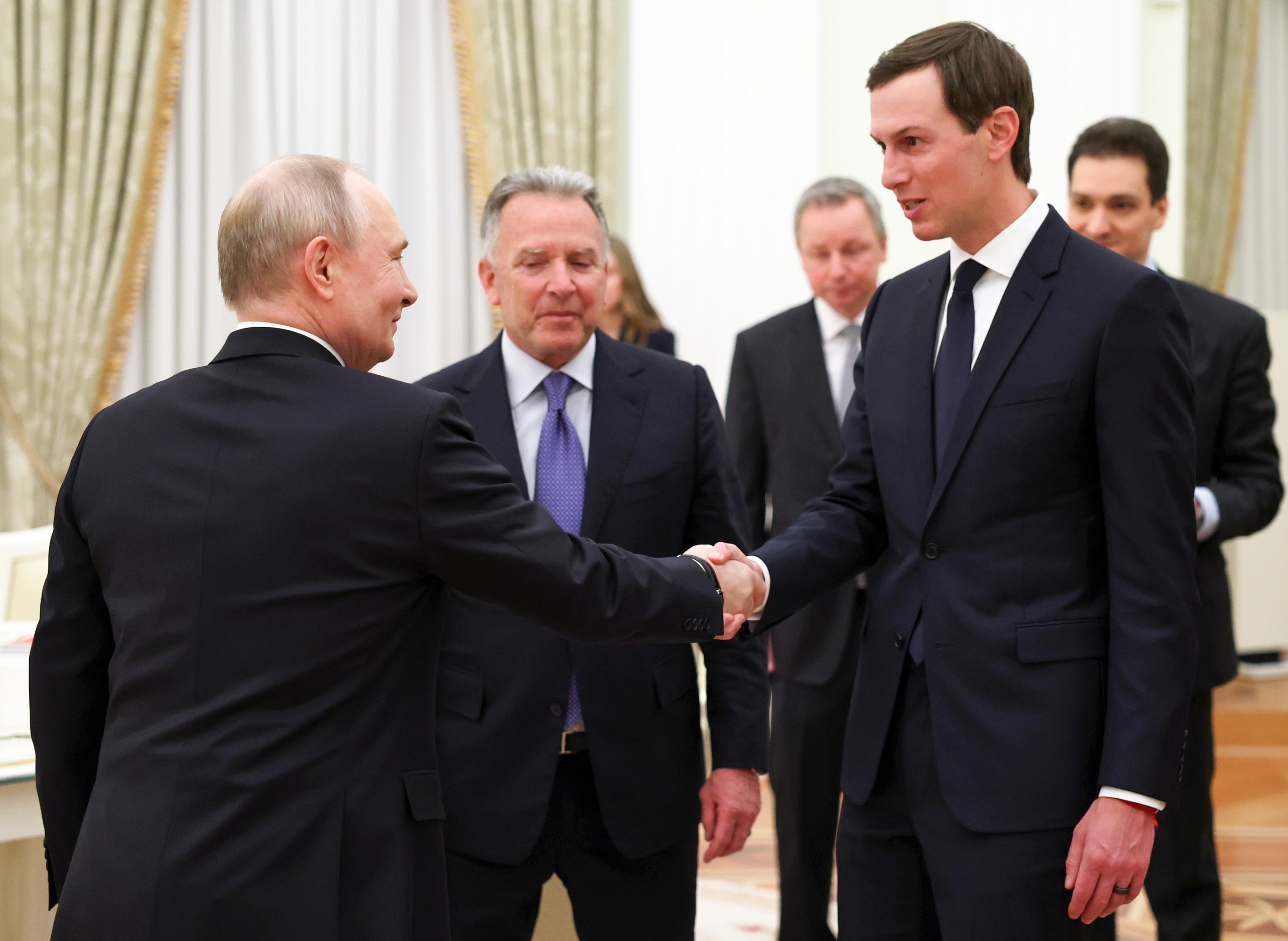 俄罗斯总统 Vladimir Putin 接见美国总统特使 Steve Witkoff 和美国总统女婿 Jared Kushner,莫斯科。1月22日,俄总统 Putin 与美总统特使 Witkoff 及相关人员举行约3.5小时会谈,主要讨论内容涉及乌克兰和平计划、加沙重建计划、格陵兰岛局势等议题。俄罗斯总统助理在会后透露,双方确认只有解决领土问题才能达成俄乌和平的长期解决方案,俄美乌三方代表在阿布扎比举行首次会议,俄方强调其武装力量掌握战略主动权,俄罗斯将在通过政治和外交手段解决问题前,继续追求特别军事行动的目标。摄影师:Alexander Kazakov