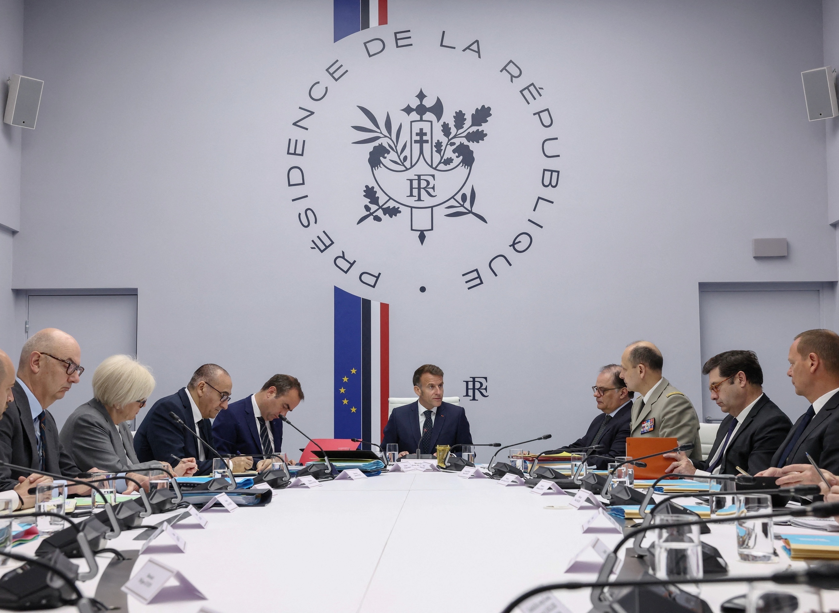 法国总统 Emmanuel Macron 主持国防和安全委员会会议,爱丽舍宫。4月8日,法国总统 Macron 召集内阁部长及高级防务官员就伊朗和中东局势进行讨论。当天法国、德国、英国、加拿大、日本等15国领导人发表联合声明,感谢巴基斯坦及所有相关方面促成美伊停火协议,呼吁有关各方遵守停火协议并通过谈判迅速而持久地结束战争,确保霍尔木兹海峡航行自由,避免全球能源危机。摄影师:Tom Nicholson