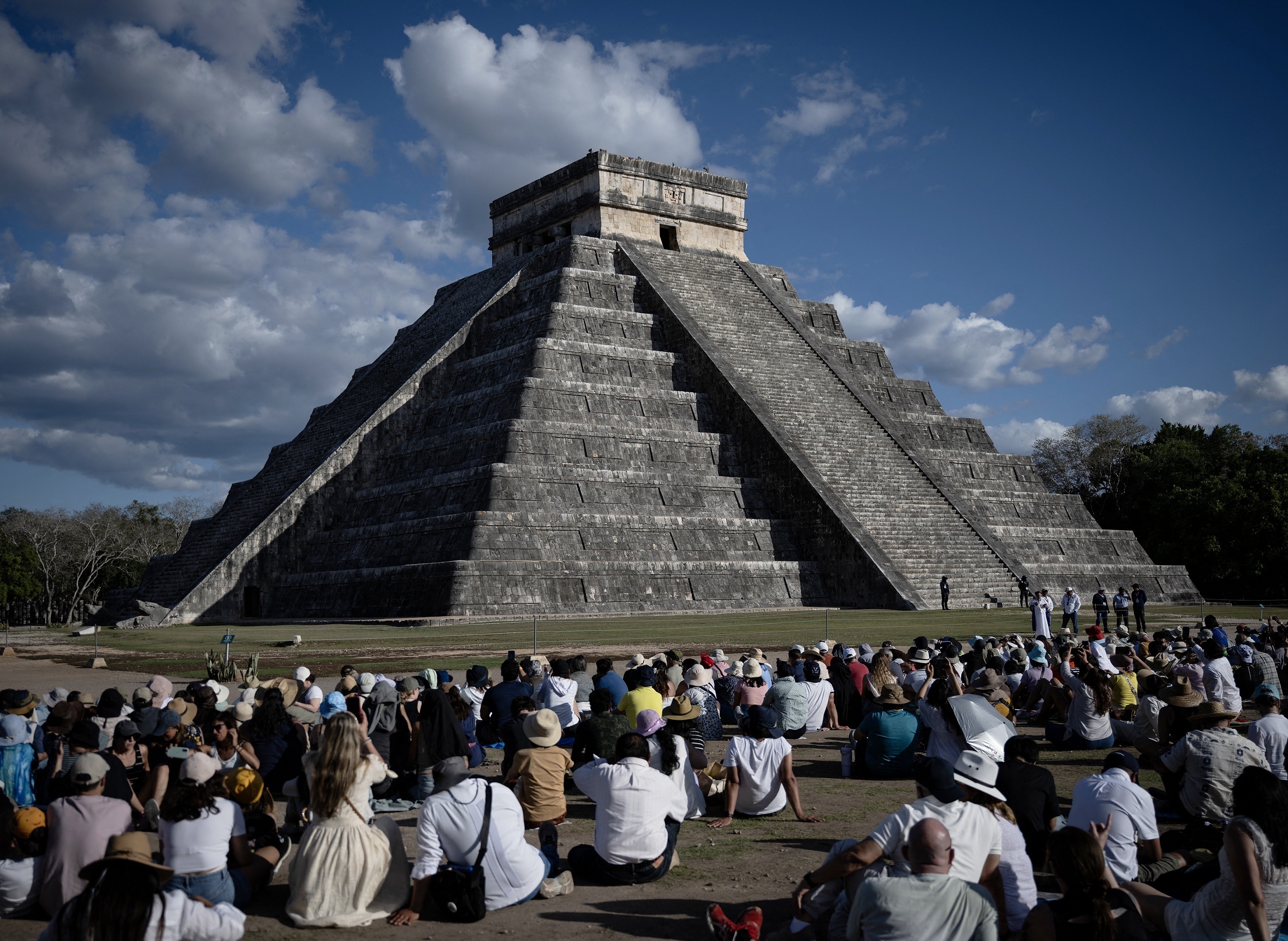 墨西哥民众聚集在玛雅遗迹「卡斯蒂略金字塔」(El Castillo Pyramid)庆祝春分日,奇琴伊察。3月21日,超过1万人前往墨西哥卡斯蒂略金字塔前庆祝北半球春分日。这座美洲古代金字塔建于公元8至12世纪,是玛雅人祭祀羽蛇神(Kukulkan)的神庙,建筑四面共有365级台阶,代表玛雅哈布历的365天。墨西哥央行最新报告预测2026年 GDP 将增长1.6%,比前次预测值上调0.5个百分点,主要受2026年世界杯足球赛、美墨贸易增长等正面因素推动。摄影师:Carl de Souza