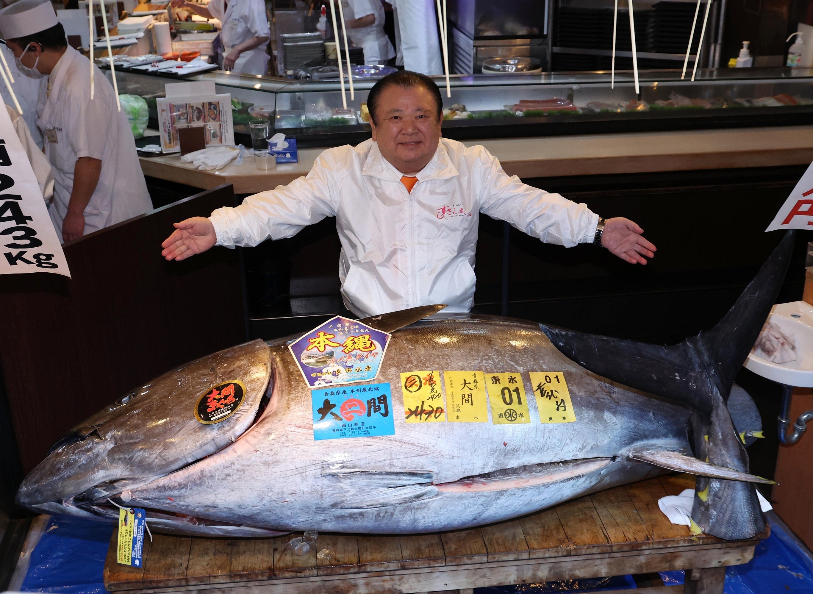 日本民众在西宫神社供奉的金枪鱼上贴硬币祈求新一年财运,兵库县。1月9日,日本西宫神社举行一年一度的「十日惠比寿」活动,本年度供奉品为一条长3米、重达270公斤的蓝鳍金枪鱼,为当地23年来捕获的最大金枪鱼。日本厚生劳动省数据显示2025年11月考虑到物价变动因素的人均实际工资同比下降-2.8%,连续11个月下滑,所有劳动者人均总实际劳动时间减少-3.6%至135.2小时。摄影师:Takuya Yoshin