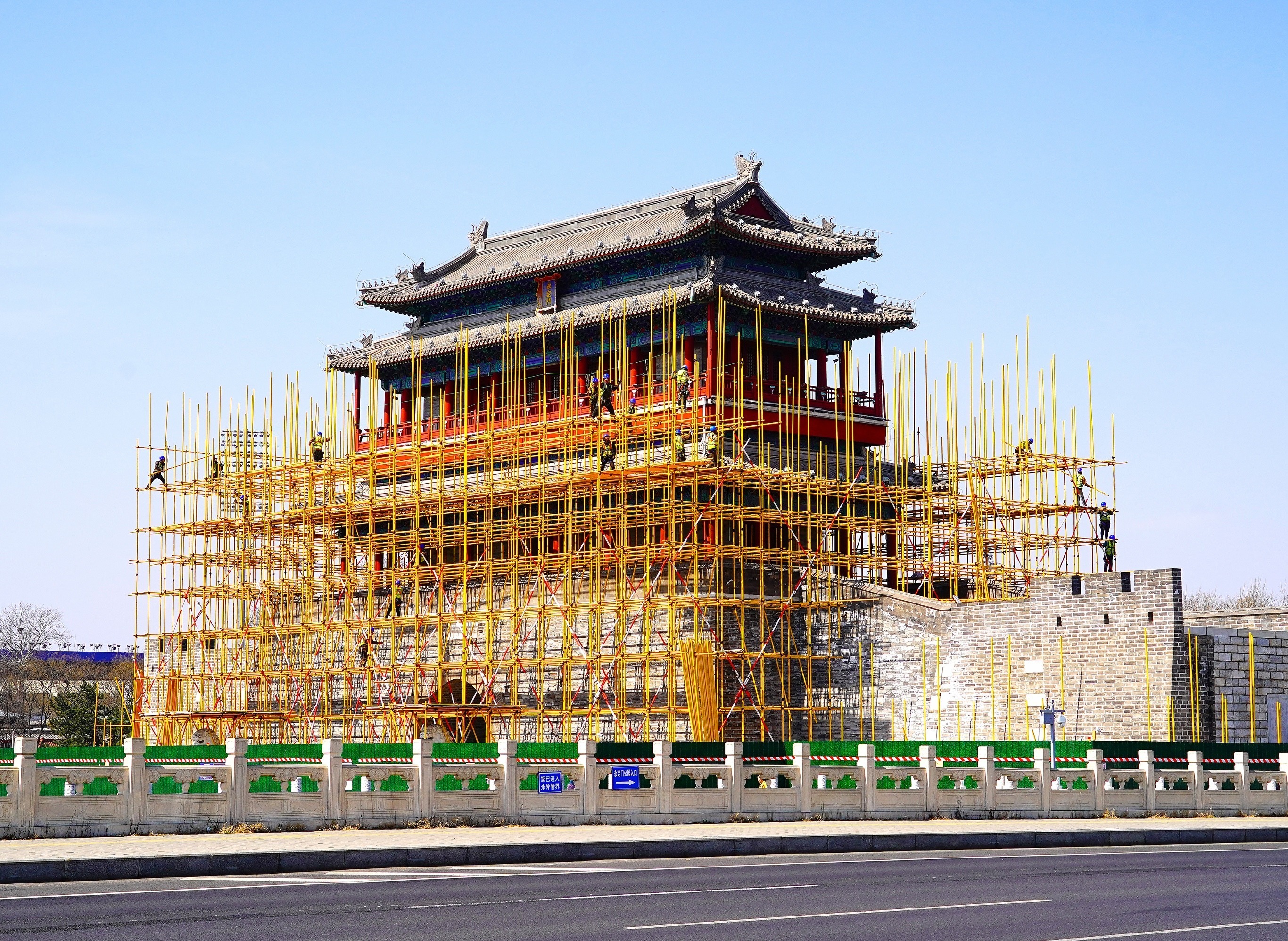 北京永定门城楼进入修缮阶段。3月20日,北京永定门城楼正式启动20年来首次系统性修缮工程,计划对屋面、墙体、大木结构、油饰、彩画等部位进行全面检修和保护,升级安防消防系统并建立完善的建筑监测系统,预计工期总耗时566天。永定门城楼始建于明嘉靖32年(公元1553年),位于北京中轴线的南端起点,现存城楼重建于2005年10月,目前已出现建筑构件裂痕、瓦面漏雨、电路老化等问题。摄影师:iDaily Media