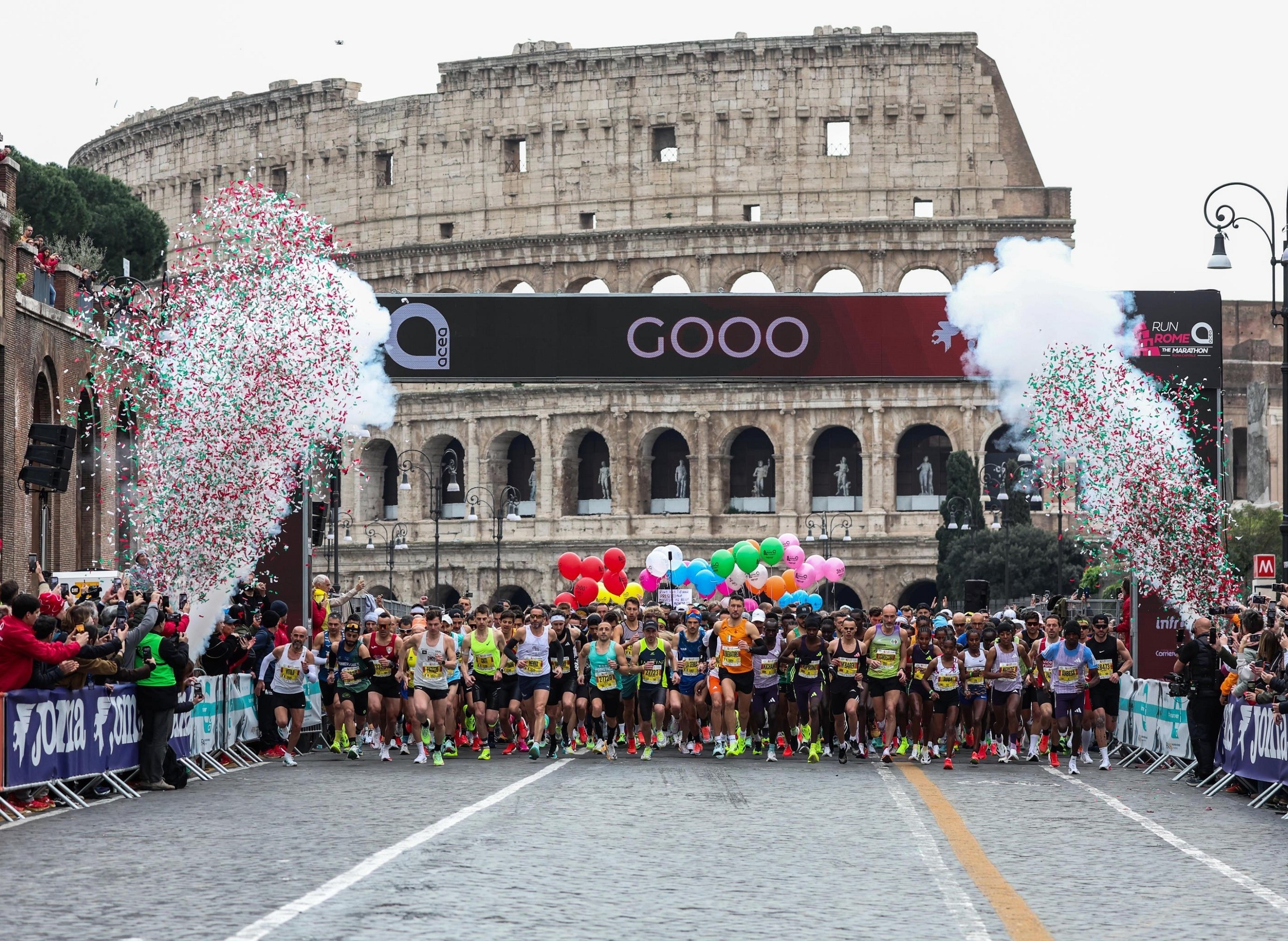 2026年罗马马拉松赛,参赛选手们途经古罗马斗兽场遗址,意大利。3月22日,第31届罗马马拉松赛正式开跑,本年度共有来自166个国家和地区的超过3.6万马拉松爱好者参加,赛道起终点均位于帝国广场大道,全程42.195公里,途经罗马斗兽场、马西莫竞技场、圣彼得大教堂等地标景点。肯尼亚选手 Asbel Rutto 以2小时06分32秒的成绩赢得本年度男子组冠军,肯尼亚选手 Pascaline Kibiwot 以2小时22分44秒的成绩赢得女子组冠军并刷新赛道纪录。摄影师:Emanuele Valeri