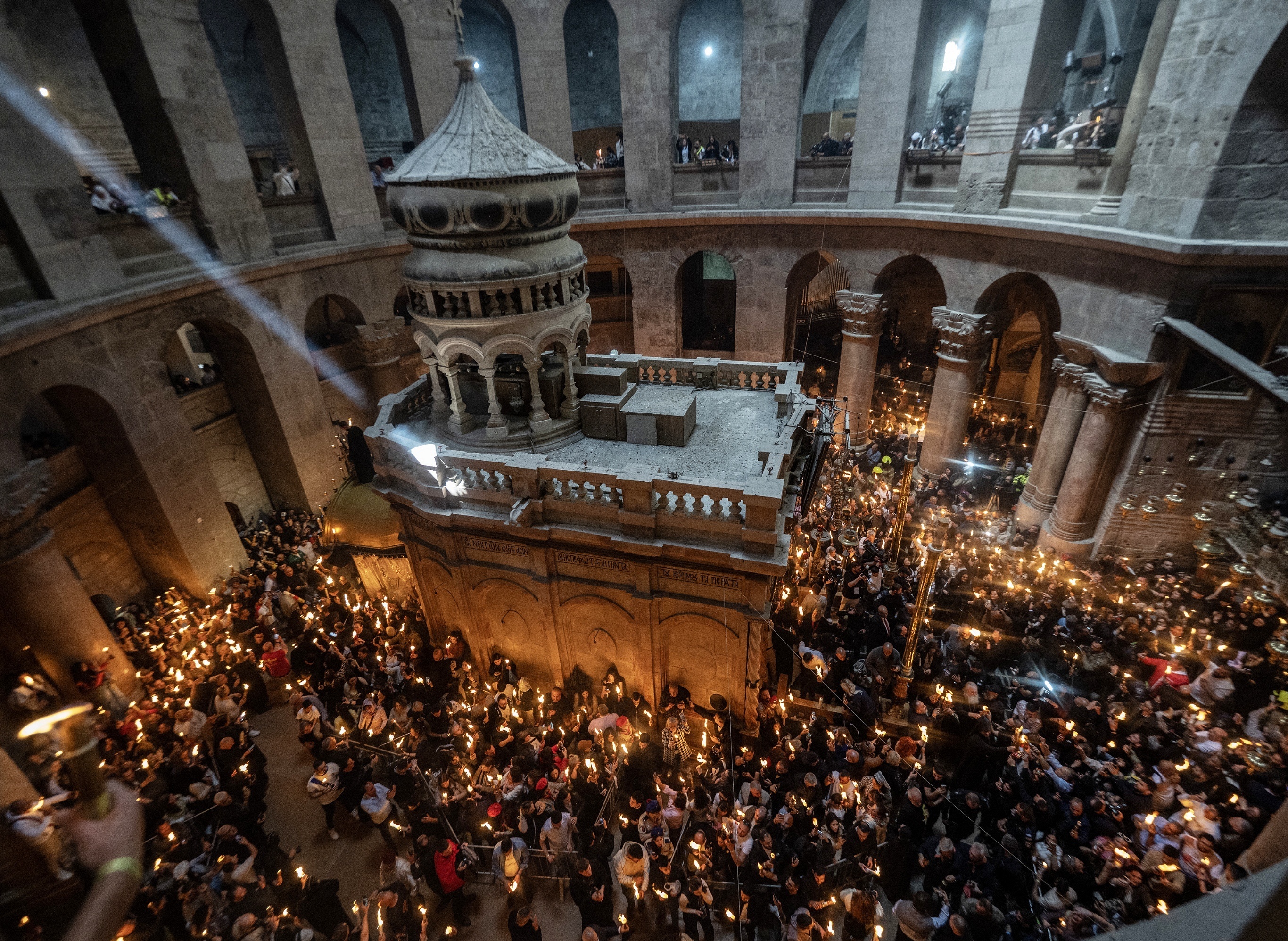 耶路撒冷圣墓教堂举行东正教复活节「圣火」(Holy Fire)仪式。4月11日,耶路撒冷圣墓教堂在东正教复活节前夕举行「圣火」降临迎取仪式,该仪式可追溯至公元9世纪,迄今已有至少1200年历史。根据传统,复活节圣火将由耶路撒冷东正教牧首进入圣墓教堂的基督墓室中取出,然后传递给在外等候的东正教信徒,再被带往有东正教信仰的各国。2026年东正教复活节庆祝日期为4月12日。受美以伊战争影响,以色列政府限制最多3000名东正教信徒进入圣墓教堂参加本年度「圣火」降临仪式。摄影师:Alkharouf Mostafa
