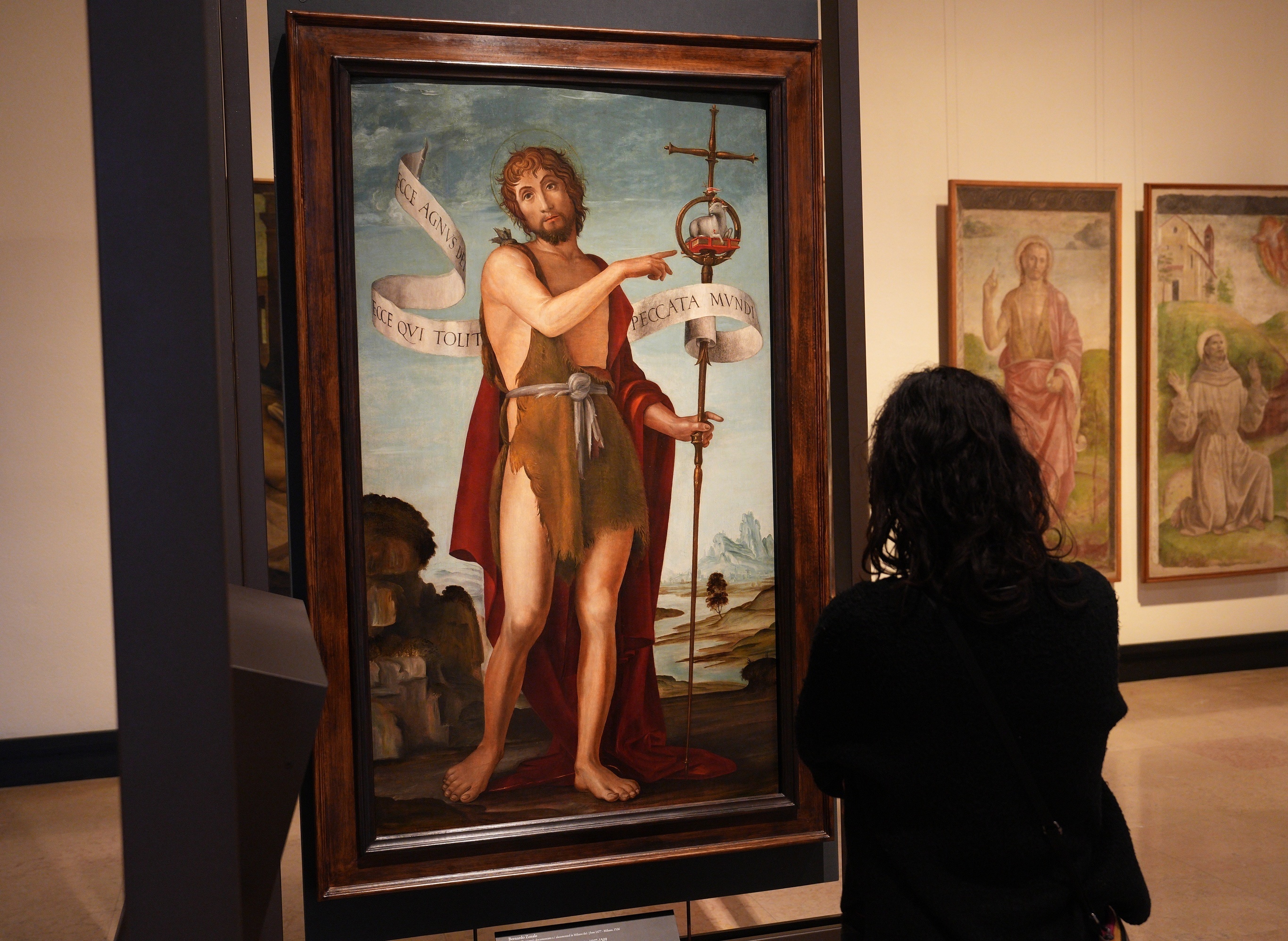 米兰斯福尔扎城堡「达·芬奇学派」展厅,一幅文艺复兴时期达·芬奇画派作品《施洗约翰》正在展出,意大利。1月20日,米兰斯福尔扎城堡美术馆的「达·芬奇学派」展厅经翻修后重新对公众开放,该展厅专门收藏和展出达·芬奇工作室或受其风格影响的文艺复兴时期艺术家的作品。斯福尔扎城堡建于1450年,达·芬奇曾受邀为这座城堡绘制天顶壁画。本次新展厅启用是斯福尔扎城堡为迎接米兰冬奥会推出的达·芬奇主题展览活动之一。摄影师:Duilio Piaggesi