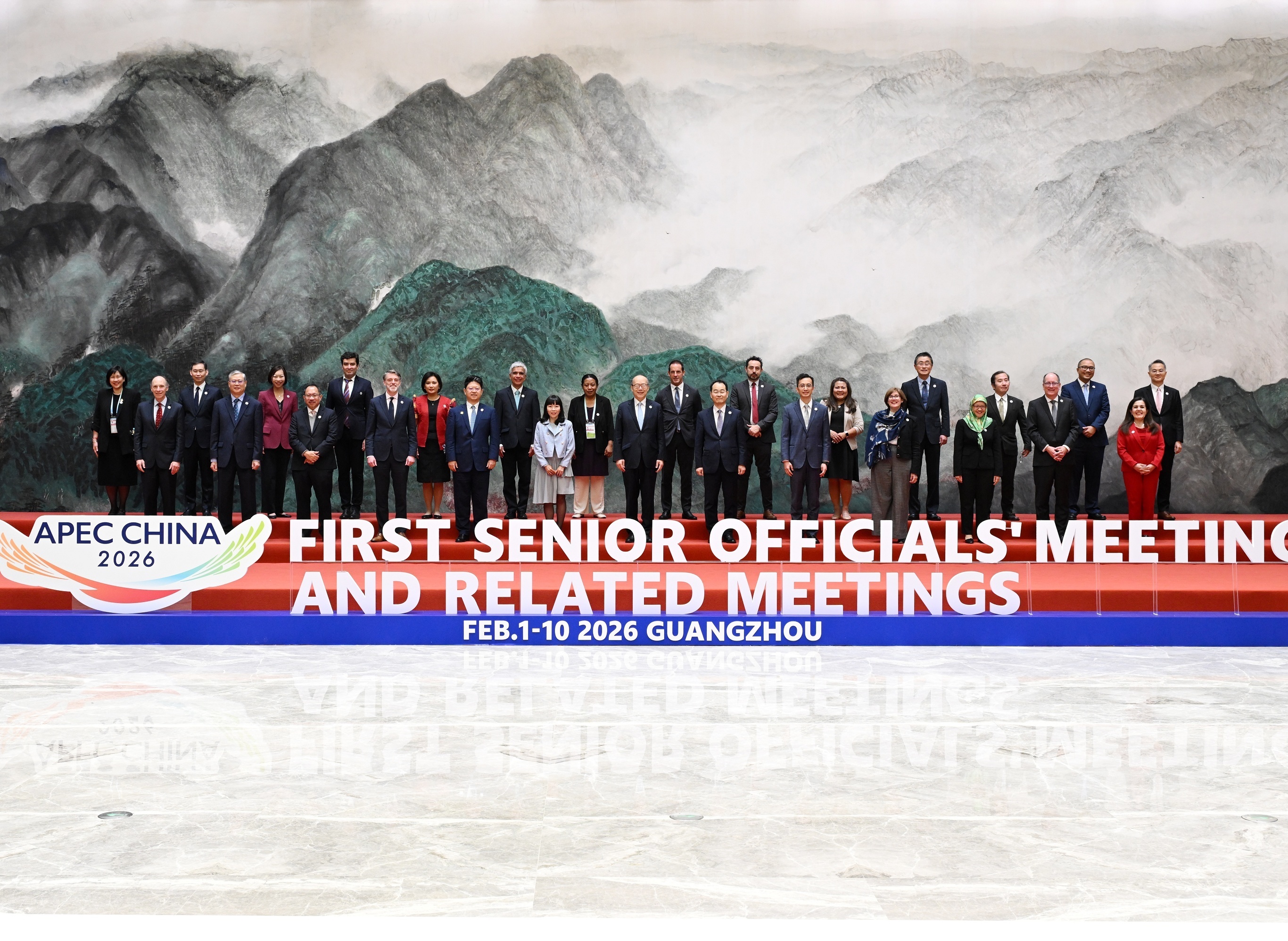 2026年亚太经合组织(APEC)第一次高官会在广州举行,中国广东省。2月10日,中国作为 APEC 2026年轮值主席国举办首次高官会议,共有来自各成员经济体的超过1400名代表出席,各方围绕「建设亚太共同体,促进共同繁荣」主题和「开放、创新、合作」三大优先领域进行深入讨论。这是中国继2001年、2014年之后时隔12年再次担任 APEC 东道主,预计全年将举办约300场会议和活动,并于11月在深圳举办领导人峰会。摄影师:Tian Yuhao