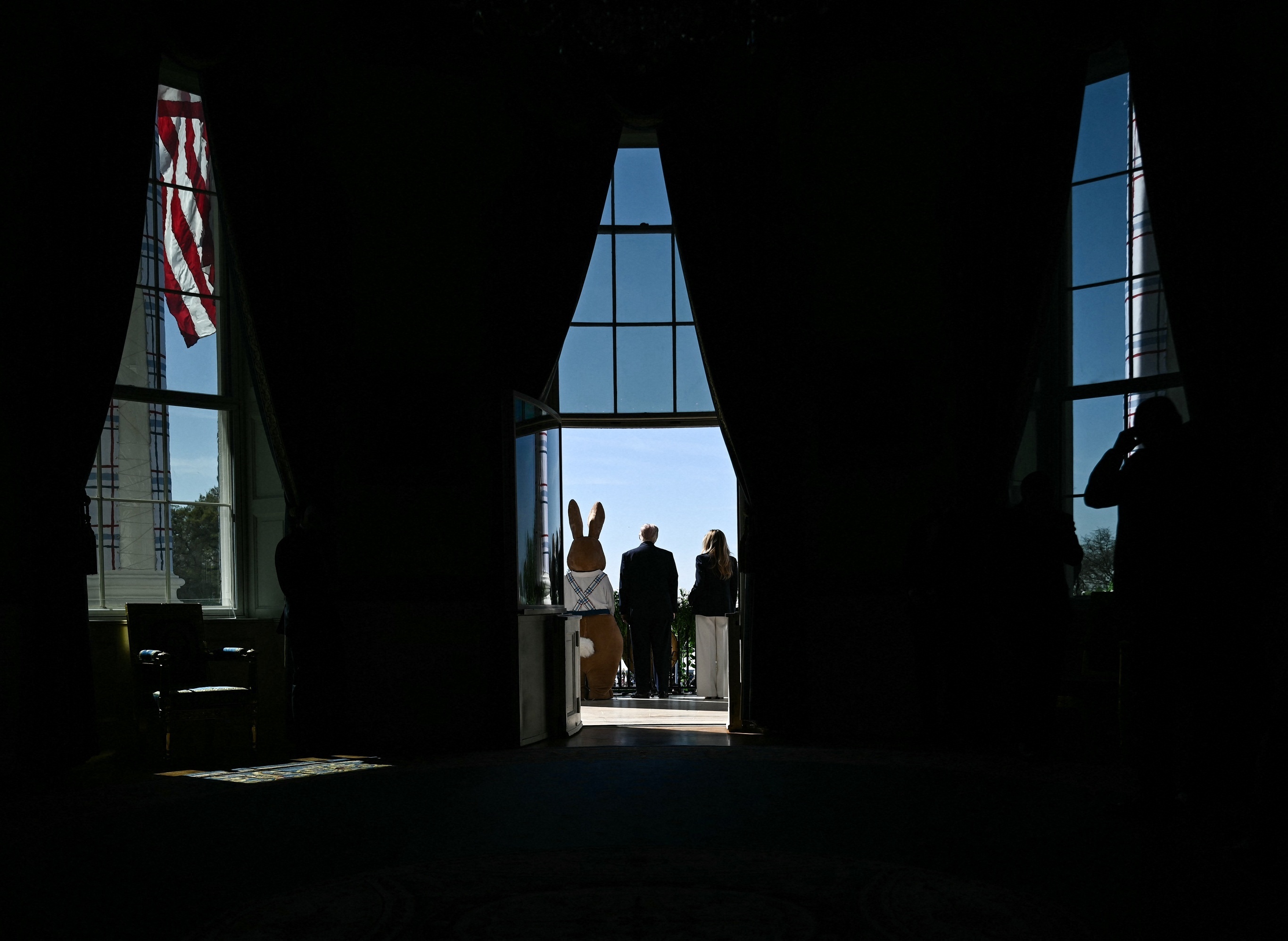 美国总统 Donald Trump 夫妇出席白宫复活节庆祝活动,华盛顿特区。4月6日,白宫举办第146届复活节滚彩蛋活动,本年度主题为庆祝美国建国250周年,现场设置滚彩蛋比赛、彩蛋涂绘、小鸡农场科普展、迷你高尔夫球和月球探索体验等活动,共有近5万名宾客受邀参加。美国农场局数据显示2026年2月美国鸡蛋零售价格为每打2.5美元,同比下降-57%,主要原因为禽流感疫情结束、鸡蛋产量恢复正常。摄影师:Brendan Smialowski-Pool