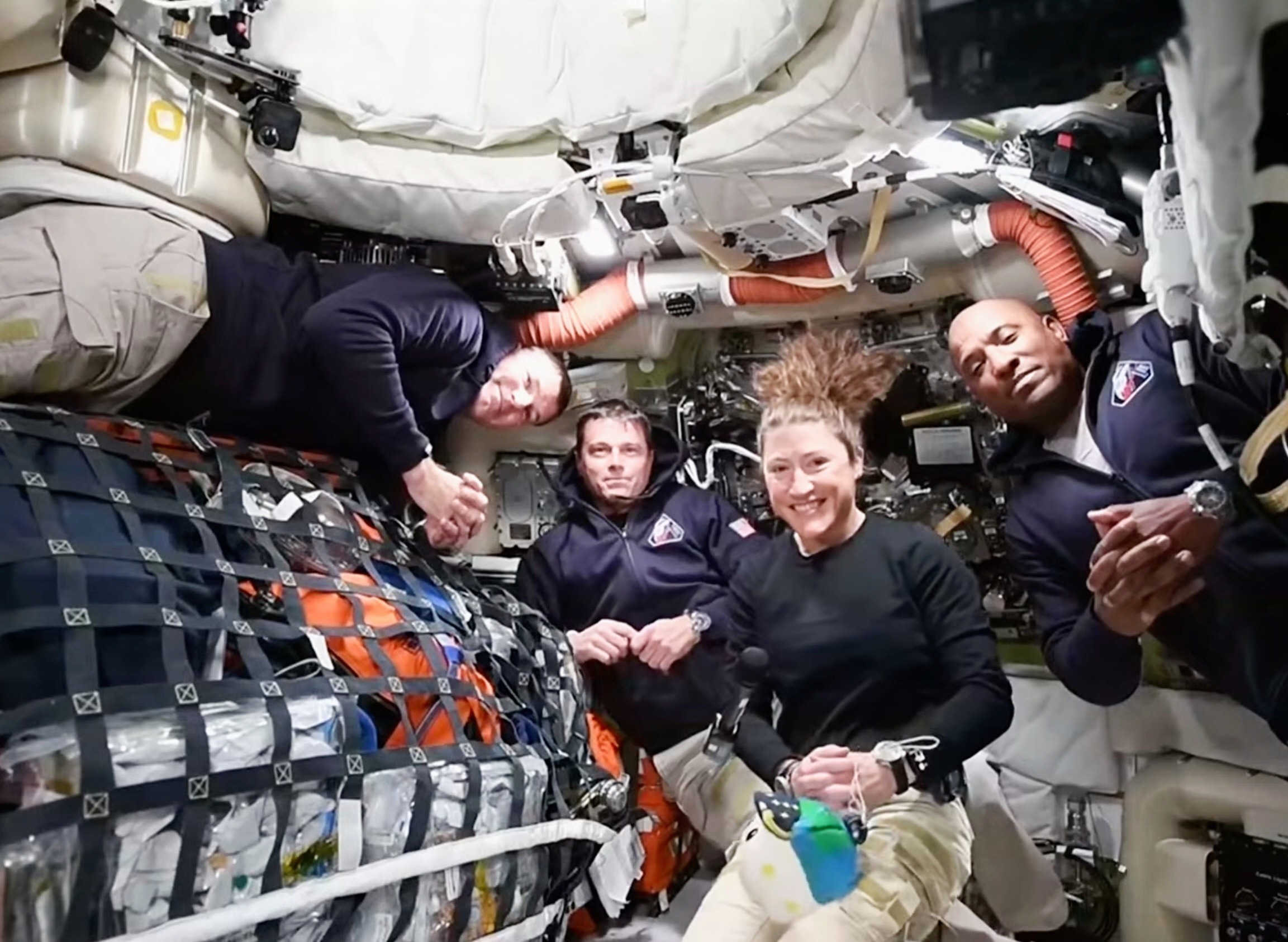 NASA 公布一张「阿尔忒弥斯2号」任务乘组与地面人员进行视频会议的照片。4月3日,「阿尔忒弥斯2号」任务乘组与地面控制中心首次视频连线,4名宇航员在公开直播中分享了猎户座飞船的工作和居住体验。目前猎户座飞船正在地月转移轨道上以每小时约5632公里的速度向月球飞行,预计4月6日飞掠近月点,宇航员将在约6个小时的观测窗口期内近距离拍摄并记录月球表面的撞击坑、熔岩流、山脊等地貌特征。摄影师:NASA