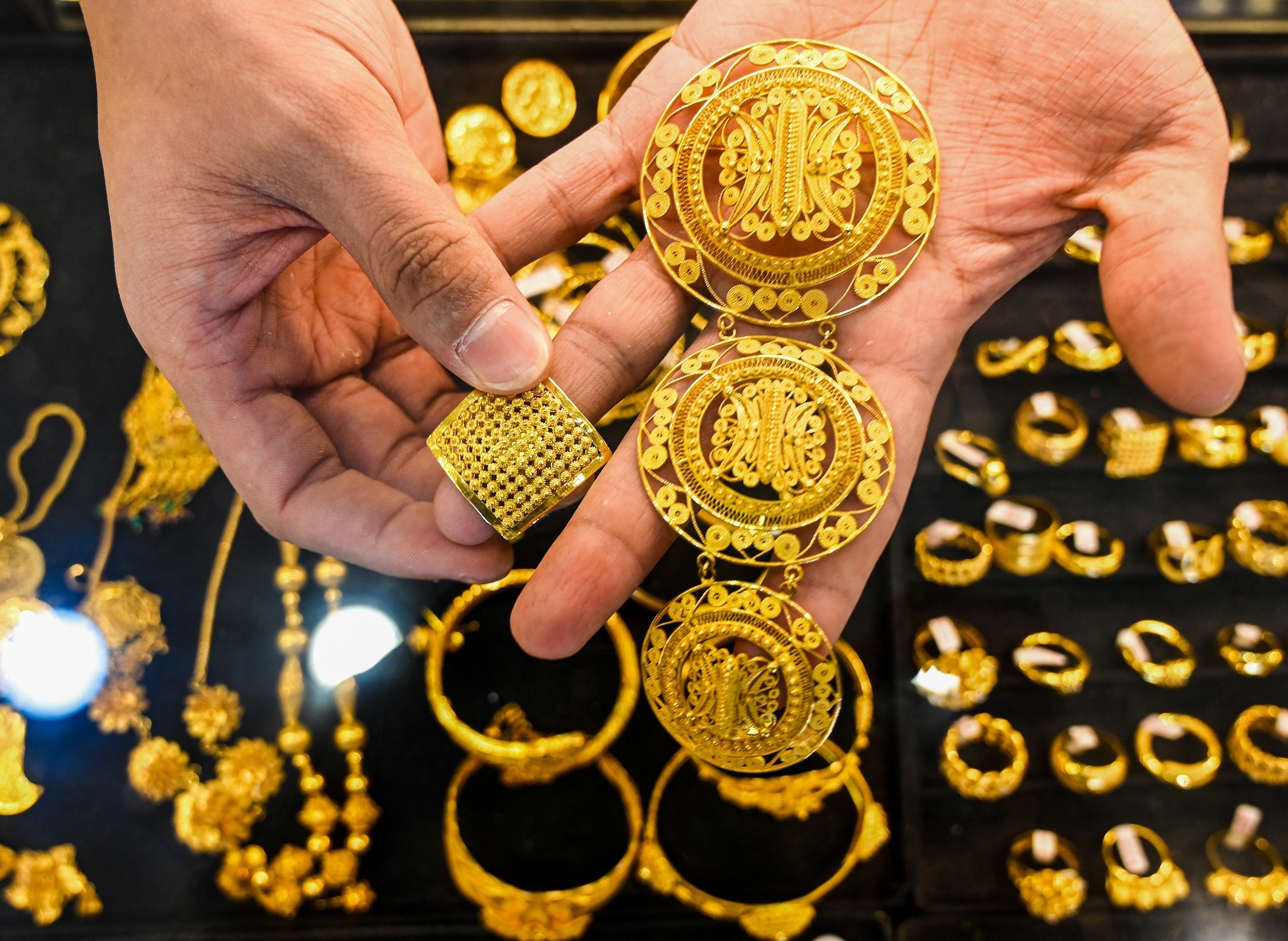 印度尼西亚一家珠宝店的员工展示黄金饰品,班达亚齐。1月14日,国际黄金价格盘中突破4600美元关口,最高涨至每盎司4641.40美元,创下历史新高;黄金期货价格收盘上涨0.8%至每盎司4635.70美元。本轮金价上涨主要受地缘政治和经济不确定性加剧以及美联储降息预期升温推动。2026年前两周国际金价累计涨幅达到6.9%。瑞银集团预测至2026年第一季度末黄金价格将突破每盎司5000美元。摄影师:Chaideer Mahyuddin