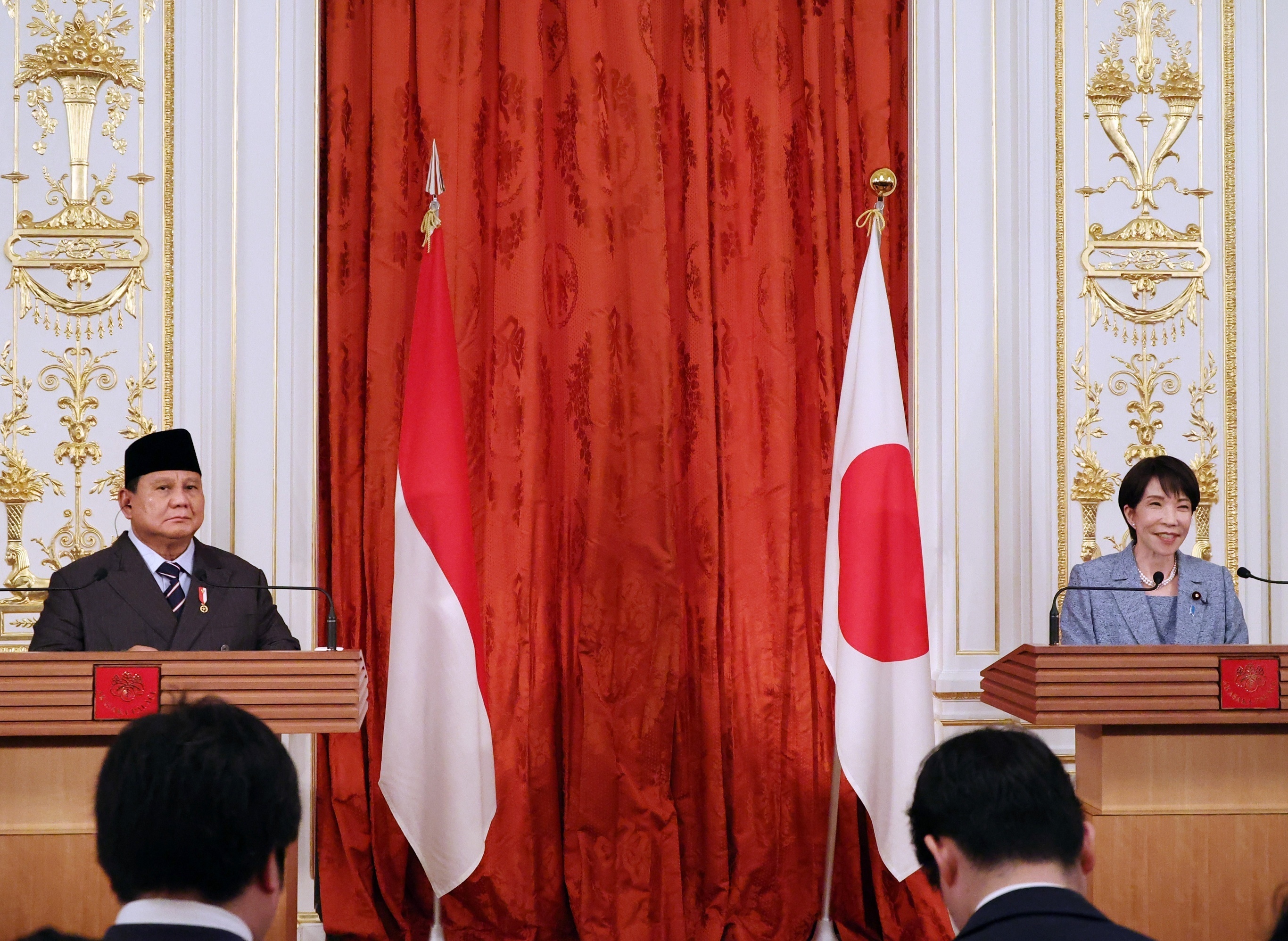 印尼总统 Prabowo Subianto 与日本首相高市早苗出席联合记者会,东京。3月29日,印尼总统 Prabowo 抵达日本进行为期3天正式访问,主要行程包括会晤日本天皇及首相、出席日印尼商业论坛等。两国领导人就双边合作、亚太及中东局势等议题举行约45分钟会谈,双方会后宣布达成总额约226亿美元的经济合作协议,包括在苏门答腊南部拉贾巴萨新建地热发电厂,以及开发大型液化天然气田等能源项目。2025年印尼与日本双边贸易额约438亿美元,其中印尼对日本贸易顺差达181亿美元,主要出口货品为煤炭、天然气、镍和贵金属等原材料。摄影师:Yoshikazu Tsuno