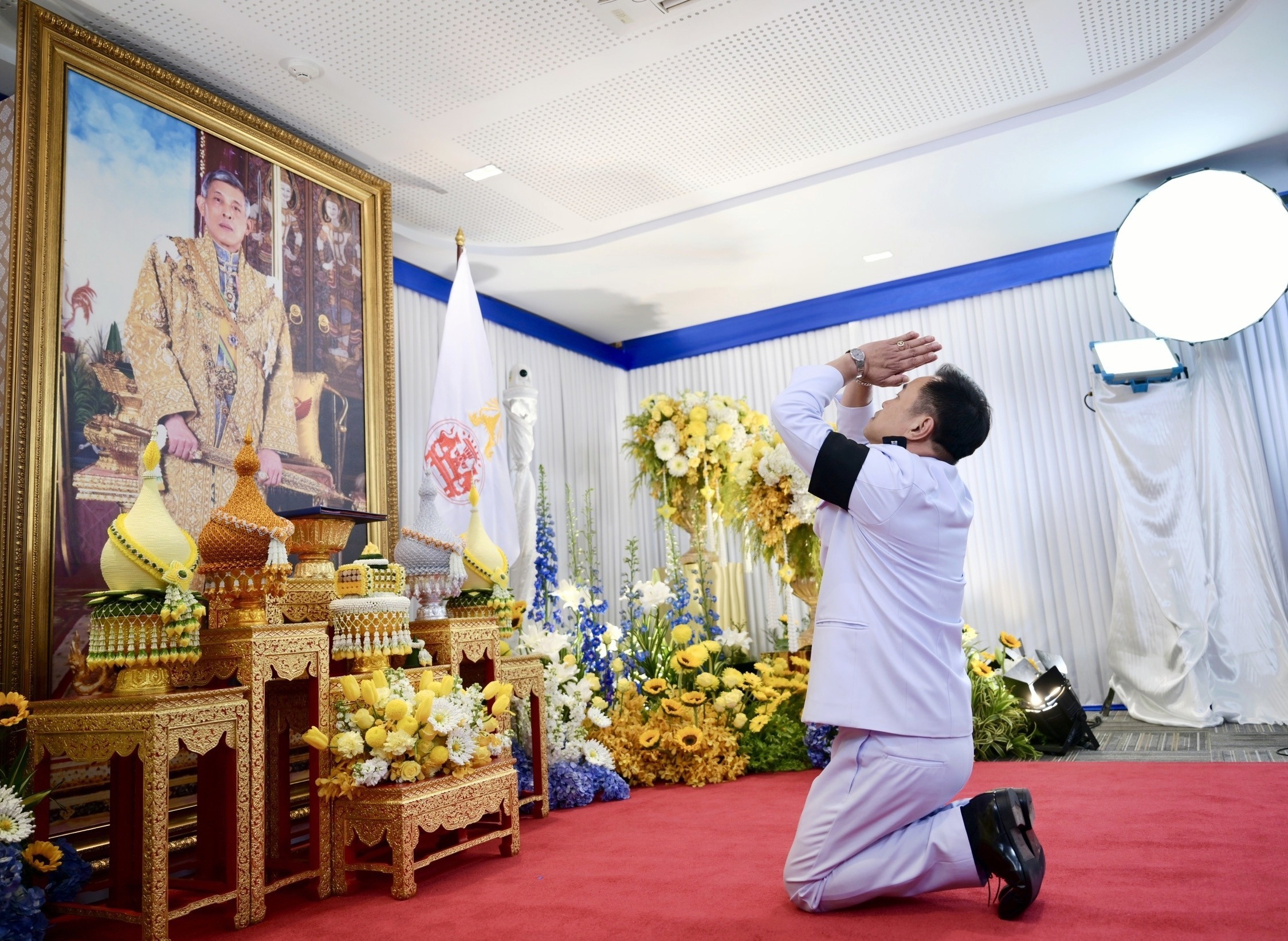 泰国新任总理 Anutin Charnvirakul 在就职仪式上向泰王拉玛十世肖像行跪拜礼,曼谷。3月20日,泰国国王拉玛十世颁发谕令正式批准 Anutin 就任泰国第32任总理第二任期。现年59岁的 Anutin 在就职演讲中承诺将秉持绝对廉洁的执政原则,优先为人民谋福祉,并保证政府工作透明公开。Anutin 预计将在一周内向国王提交新内阁名单,并在15天内向国会发表施政方针。摄影师:Royal Thai Government