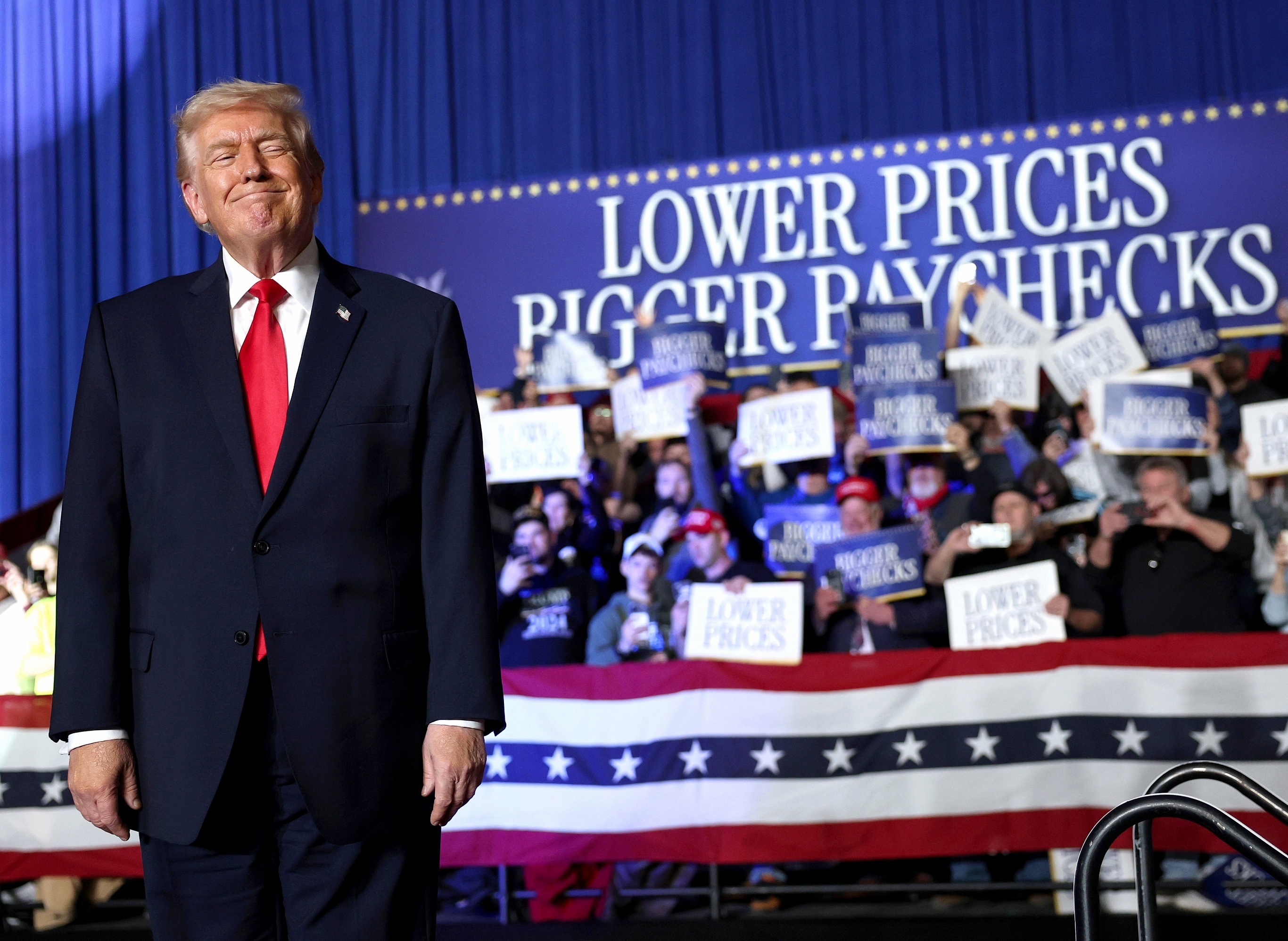 美国总统 Donald Trump 在爱荷华州举办首场中期选举竞选集会,克莱夫市。1月27日,美元指数盘中一度跌至95.55,创下2022年2月以来新低,权重最大的欧元对美元汇率上涨至1:1.20375,自2021年以来首次突破1.20关口。本轮美元指数走弱主要与市场预期美国财政部可能干预外汇市场有关。受美元走跌影响,国际现货黄金价格在1月28日首次突破5200美元关口,再创历史新高,年内累计涨幅超过20%。摄影师:Win McNamee