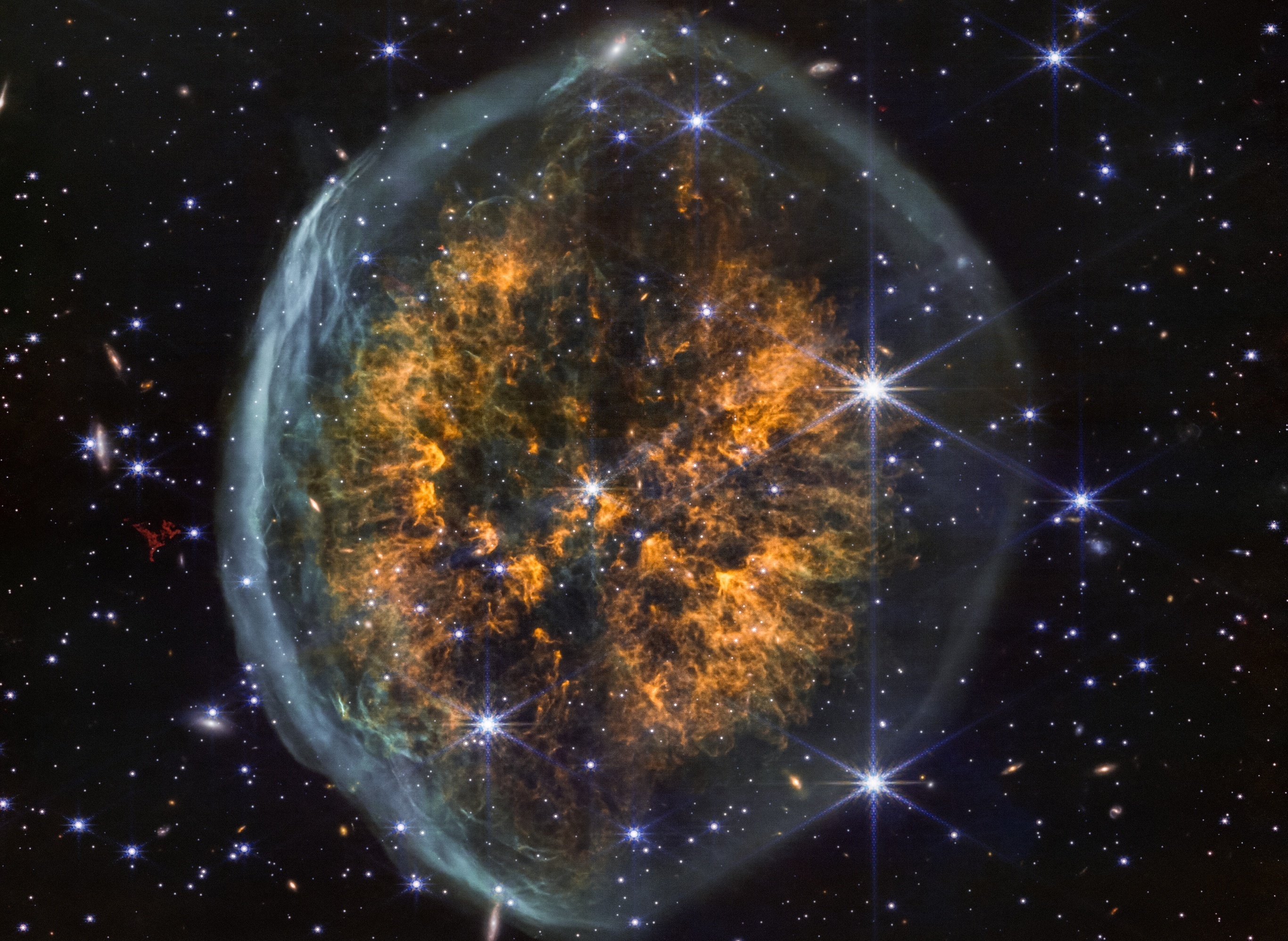 欧空局公布一张 JWST 太空望远镜拍摄的室女座「NGC 5134」螺旋星系照片。该星系距离地球约6500万光年,直径超过4万光年,拥有活跃的星系核和清晰的旋臂结构。这张照片由 JWST 望远镜搭载的中红外成像仪(MIRI)和近红外相机(NIRCam)观测数据合并而成,红色区域是星系中的气体和尘埃云,明亮光点是恒星和星团。摄影师:ESA