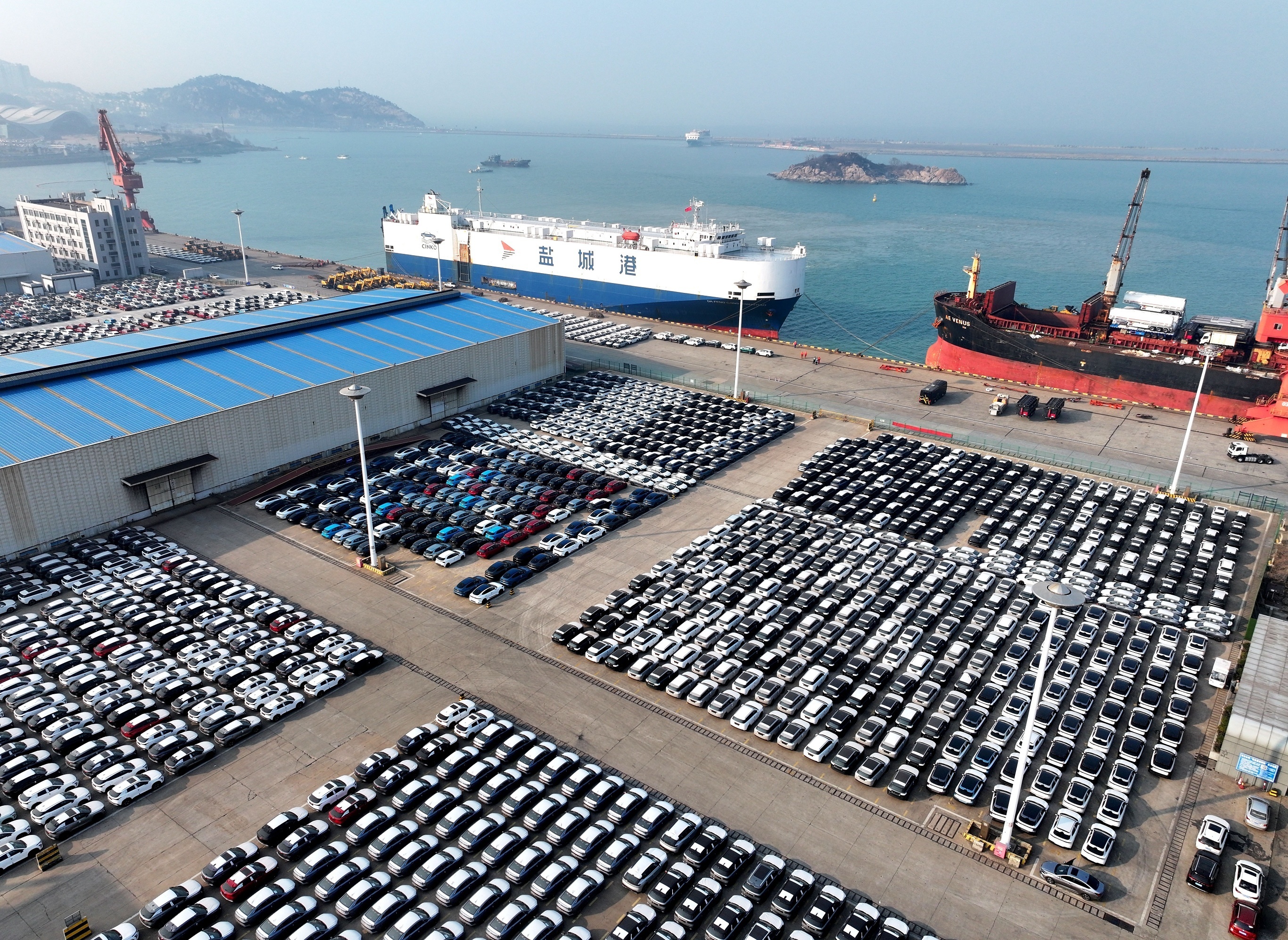 江苏连云港码头停放等待装船出口的汽车。2月11日,中国汽车工业协会公布2026年1月中国汽车产量达245万辆,新能源车型占比达40.3%;汽车出口总量达68.1万辆,同比增长44.9%,其中新能源车型出口30.2万辆,同比增长100.5%,占整体出口比重接近45%。中汽协预计2026年汽车出口规模将达到740万辆,同比增长4.3%,其中新能源车出口将达到261.5万辆。摄影师:iDaily Media