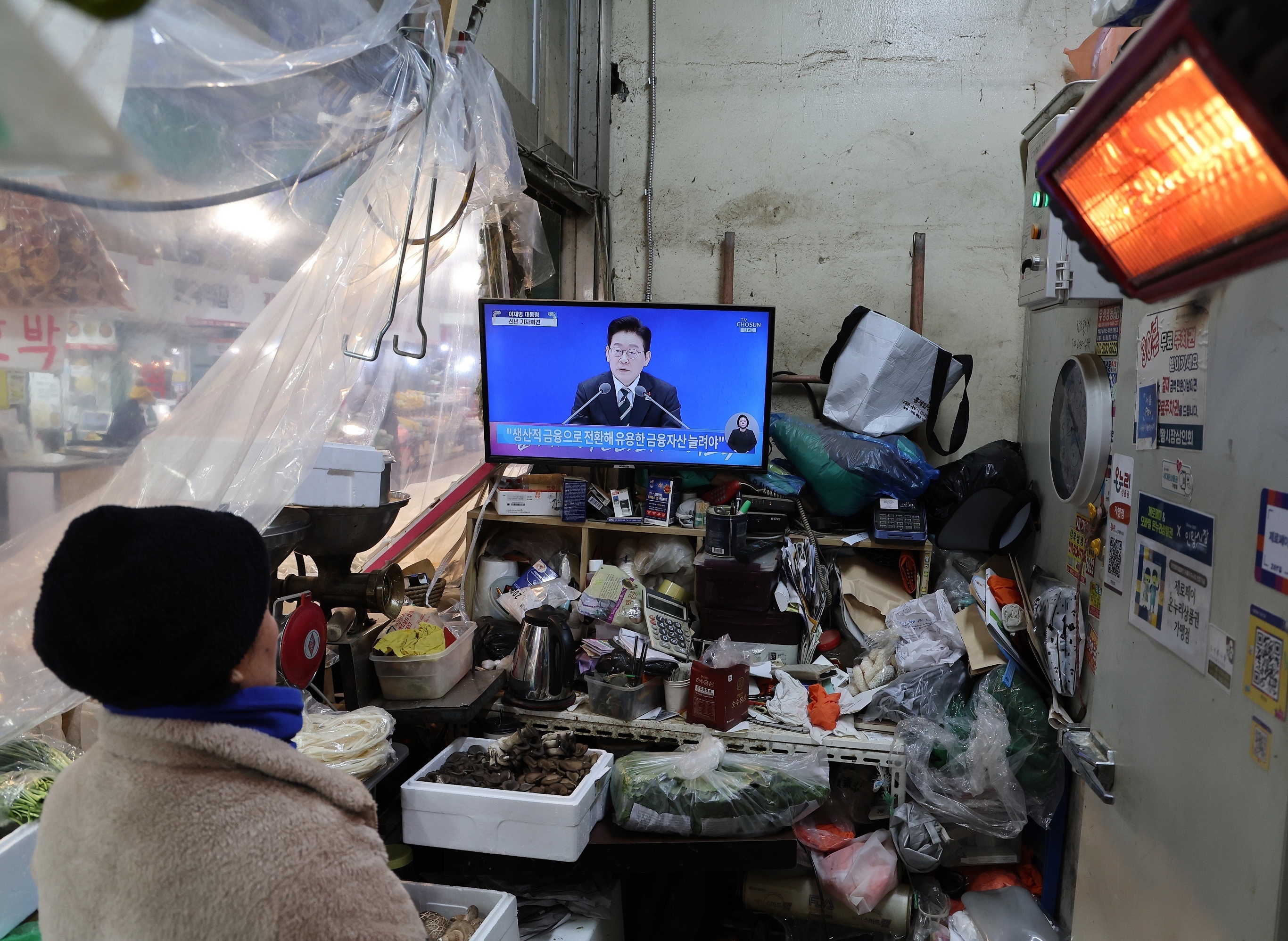 韩国民众收看韩国总统李在明新年记者会电视直播,首尔。1月21日,韩国总统李在明在长达近3小时的记者会上介绍2026年施政方向及国家发展战略,并就韩朝关系、经济发展、社会改革、宗教干政等议题发表看法。李在明强调将坚持以改善民生作为施政第一原则,推行超越理念、阵营和党派的务实主义路线,努力将2026年打造为韩国转型和飞跃的起点。李在明表示将通过外交努力早日促成朝美对话,同时为重启韩朝对话创造条件。最新民调显示李在明当前支持率为59%,比年初下滑2个百分点。摄影师:iDaily Media