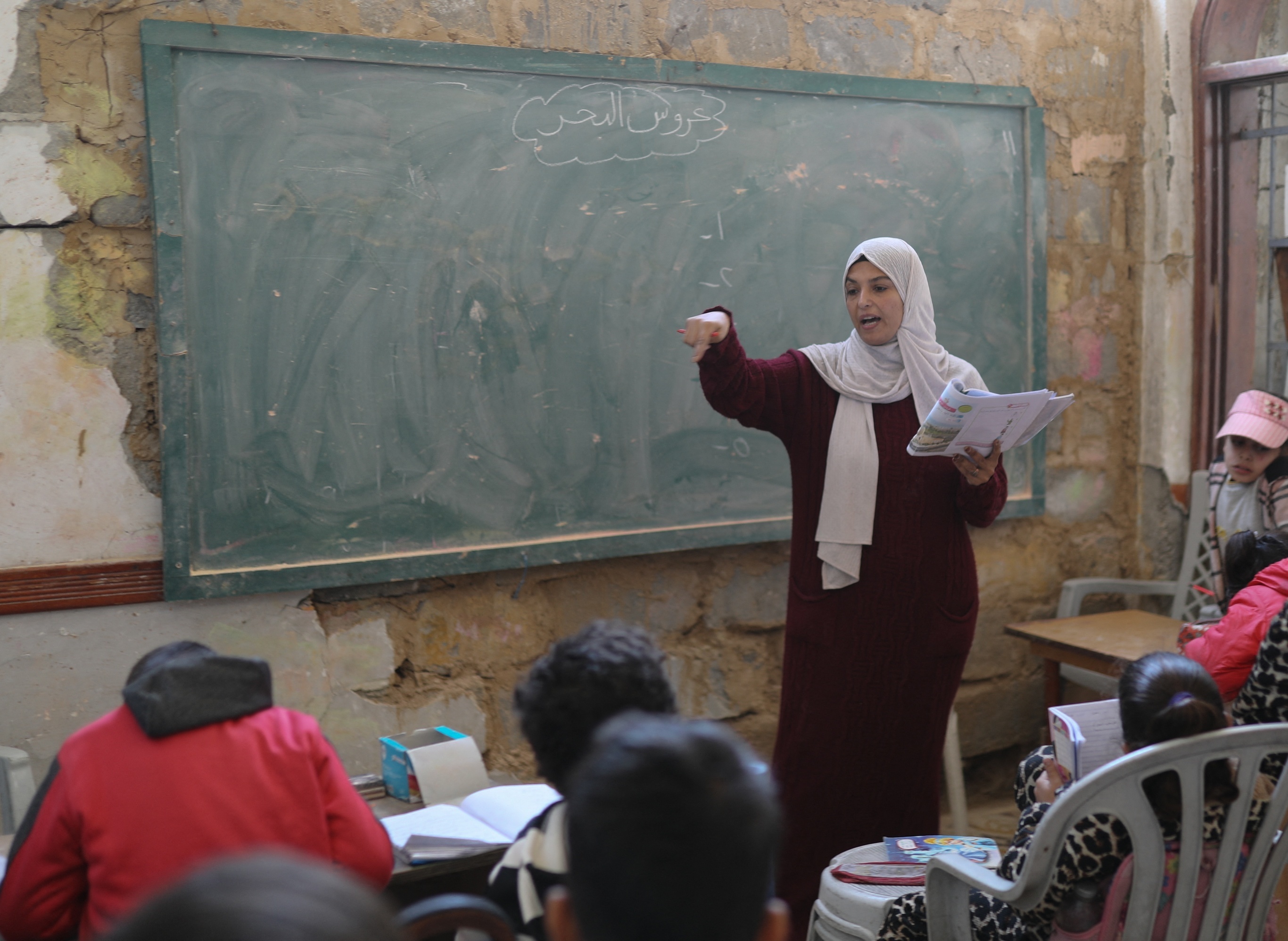 加沙儿童在受损的教室内上课,汗尤尼斯。2月7日,联合国儿童基金会警告称,2025年10月加沙停火迄今已有至少100名儿童在以色列袭击中遇难,死因包括空袭、无人机袭击、坦克炮击及中弹,其中约60名为男孩,约40名为女孩。加沙地带超过90%的学校遭到以色列军队破坏或摧毁,逾70万名学龄儿童被迫中断学业。联合国儿童基金会已在加沙地带设立超过110个学习场所为约13.5万名儿童提供教育,并计划2026年内帮助33.6万名加沙儿童重返课堂。摄影师:Adam Bilal
