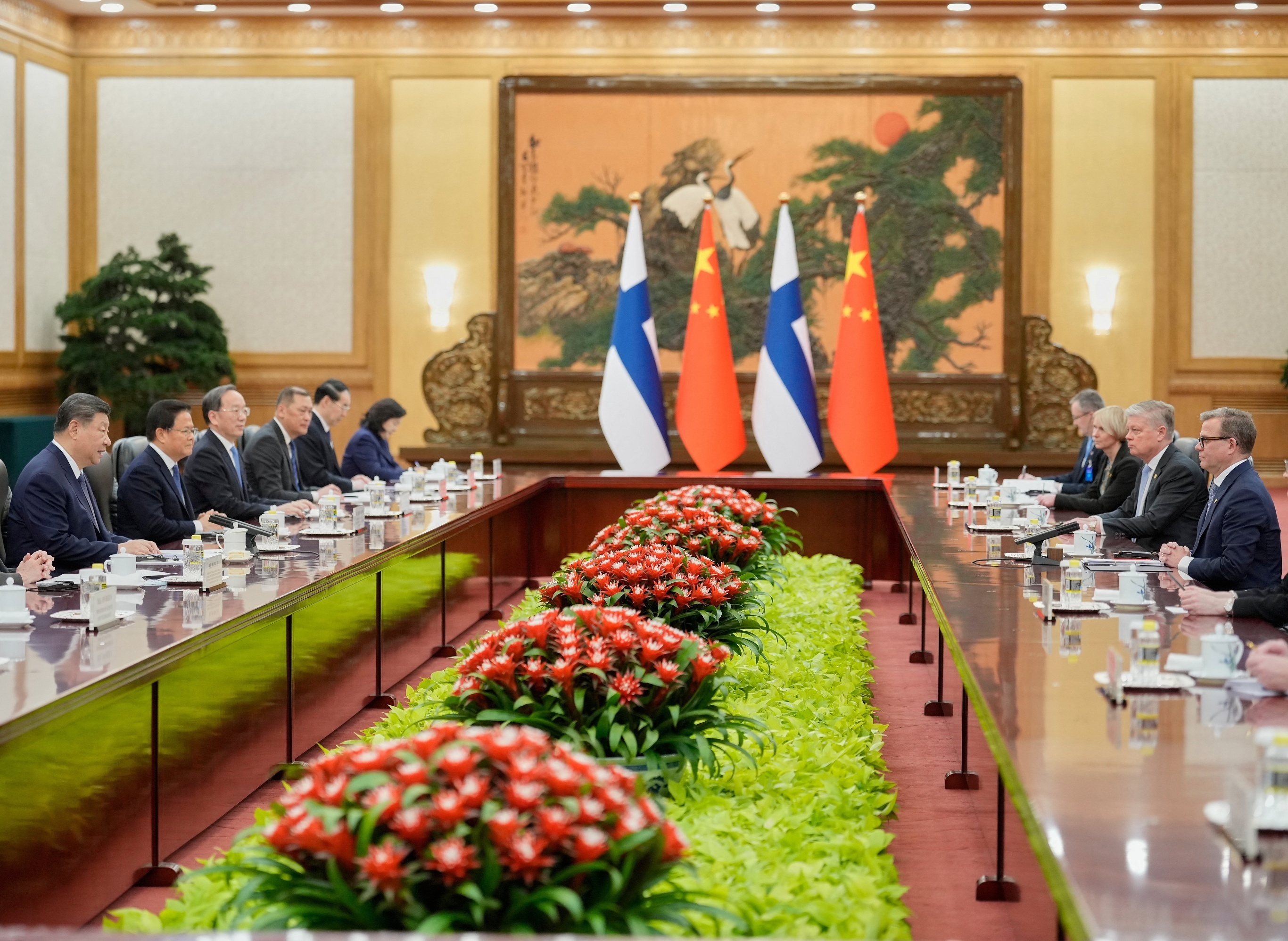 中国国家主席习近平与芬兰总理 Petteri Orpo 举行会谈,北京。1月25日,芬兰总理自2017年以来首次正式访问中国,两国领导人就中芬关系、中欧关系、经贸合作、乌克兰危机等议题交换意见。中国国家主席习近平指出,当今世界面临多重风险挑战,大国尤其要带头讲平等、讲法治、讲合作、讲诚信,希望芬兰为推动中欧关系发展发挥建设性作用。芬兰总理 Orpo 表示芬方企业对赴华合作抱有强烈兴趣,芬方坚定奉行一个中国政策,愿同中方加强沟通协调,共同维护世界和平稳定。中国是芬兰在亚洲最大的贸易伙伴,2025年双边贸易额为82.64亿美元,同比增长0.7%。摄影师:Vincent Thian