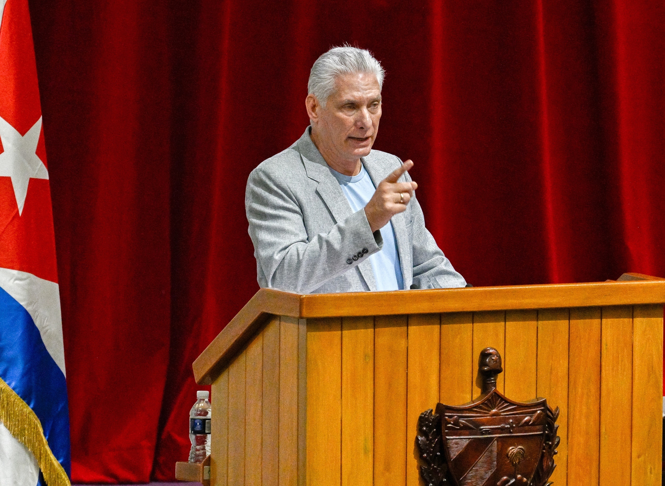 古巴国家主席 Miguel Diaz-Canel 会见向古巴提供人道援助物资的国际活动人士,哈瓦那。3月20日,古巴政府在哈瓦那会议宫为「我们的美洲车队」(Our America Convoy)举行欢迎仪式,感谢其向古巴运送人道主义救援物资。该团体由来自33个国家的逾650名政界及活动人士组成,本次访问古巴共带来20吨食品、药品及必需物资。古巴国家主席 Diaz-Canel 在讲话中谴责美国「残酷施压」其他国家孤立古巴,强调美国的企图不会得逞,并表示古巴正在为美国可能发动的「侵略」做准备。摄影师:Adalberto Roque