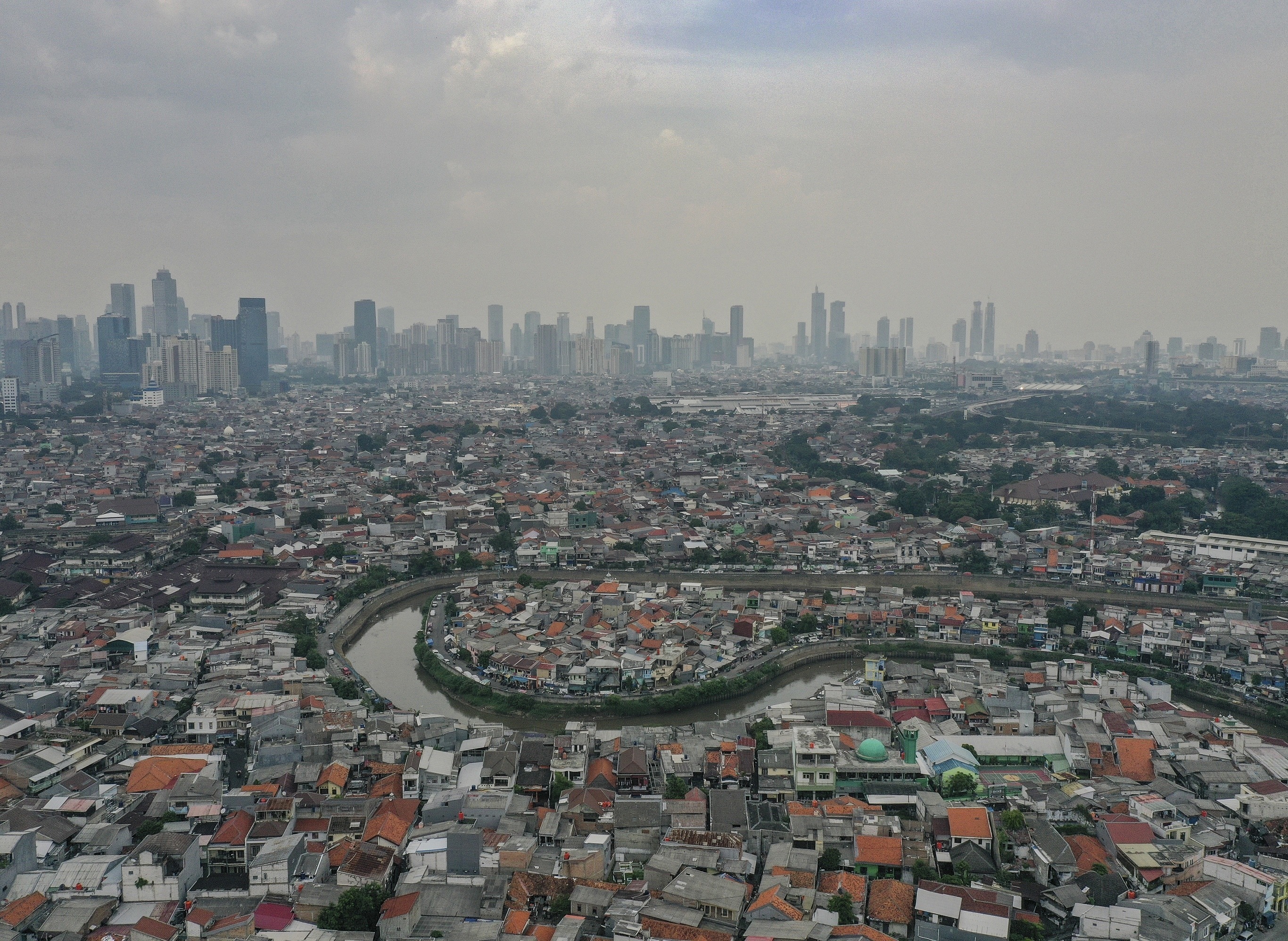 从雅加达的贫民窟眺望城市天际线,印度尼西亚。联合国《2025年世界城市化前景》报告显示,印尼首都雅加达为全球目前人口最多的城市,居民人数达到4190万,孟加拉国首都达卡以3660万排名第二,日本东京以3340万排名第三,印度新德里以3020万排名第四,中国上海以2960万排名第五。报告指出,全球82亿人口中已有45%居住在城市地区,1975年以来全球千万人口城市的数量从8个增加至33个,其中19个城市位于亚洲。摄影师:Mast Irham
