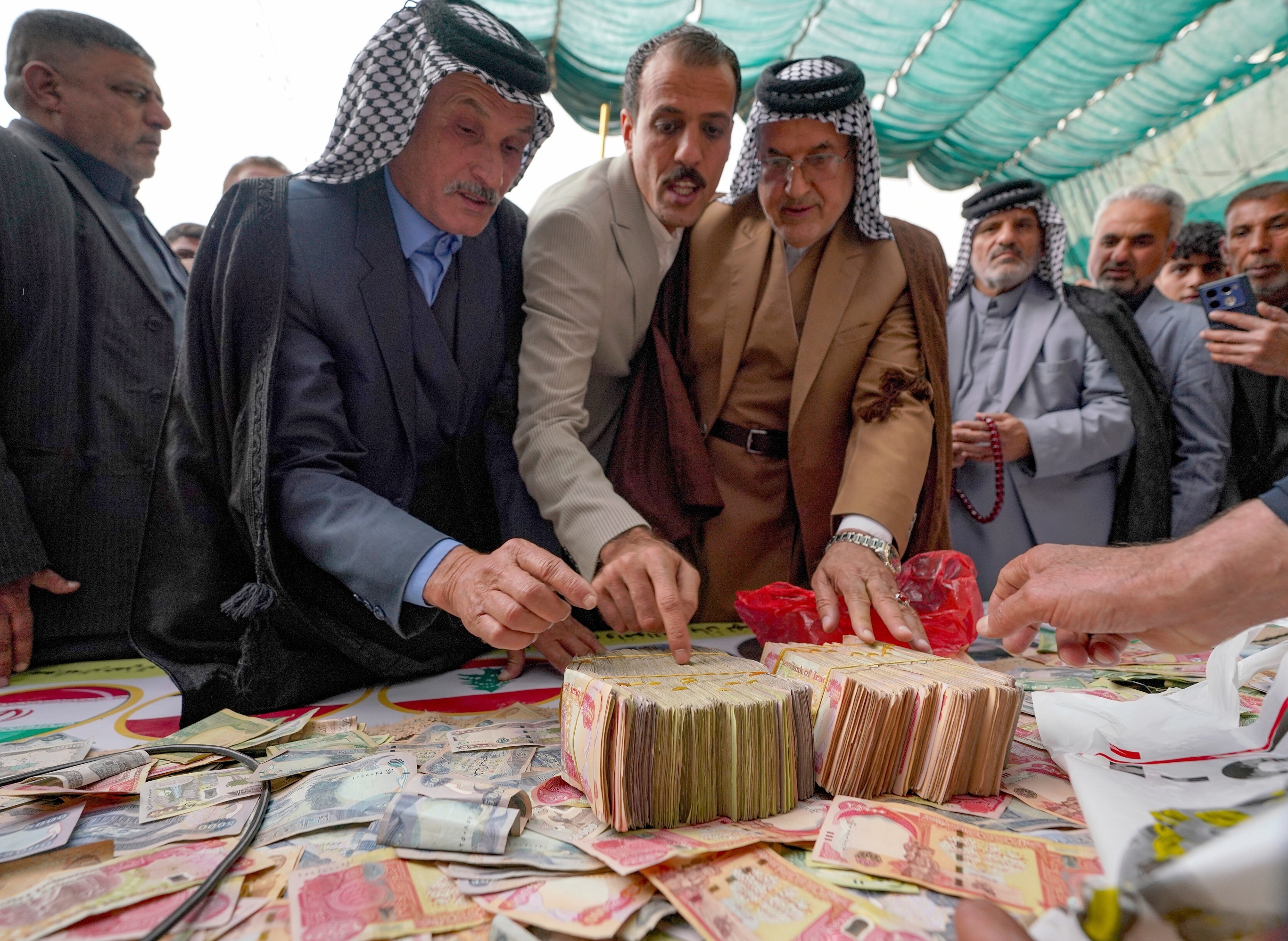 伊拉克民众募款支持伊朗和黎巴嫩人民,巴比伦。3月27日,伊拉克民众响应什叶派伊斯兰教最高领袖 Grand Ayatollah Ali Sistani 的倡议,捐赠现金、金饰等贵重财物以支持伊朗和黎巴嫩人民,三天累计筹集募款超过1亿伊拉克第纳尔(约合7.6万美元)。伊朗现任最高领袖 Mojtaba Khamenei 发表书面声明,对伊拉克宗教领袖及人民在伊朗遭受侵略时表现出的明确立场和支持表示感谢。伊朗红新月会通报2月28日至今美以袭击造成该国至少1900人死亡,包括475名妇女和儿童。摄影师:Anmar Khalil