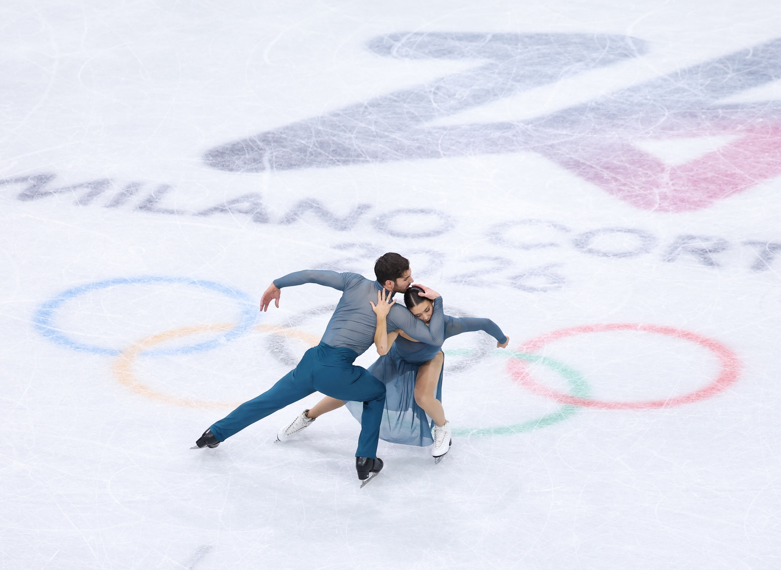 2026米兰-科尔蒂纳冬奥会花样滑冰冰舞比赛,法国选手 Laurence Fournier Beaudry 和 Guillaume Cizeron 正在进行自由舞环节动作,米兰滑冰馆。2月11日,法国选手组合 Laurence 和 Guillaume 以总分225.82的成绩夺得米兰冬奥花滑冰舞项目冠军。这是法国连续第二届冬奥会在该项目上夺冠,Guillaume 成为花滑历史上首位与不同搭档两次斩获冬奥冰舞金牌的选手。美国组合以224.39分获得银牌,加拿大组合以217.74分摘铜。摄影师:Kaname Muto