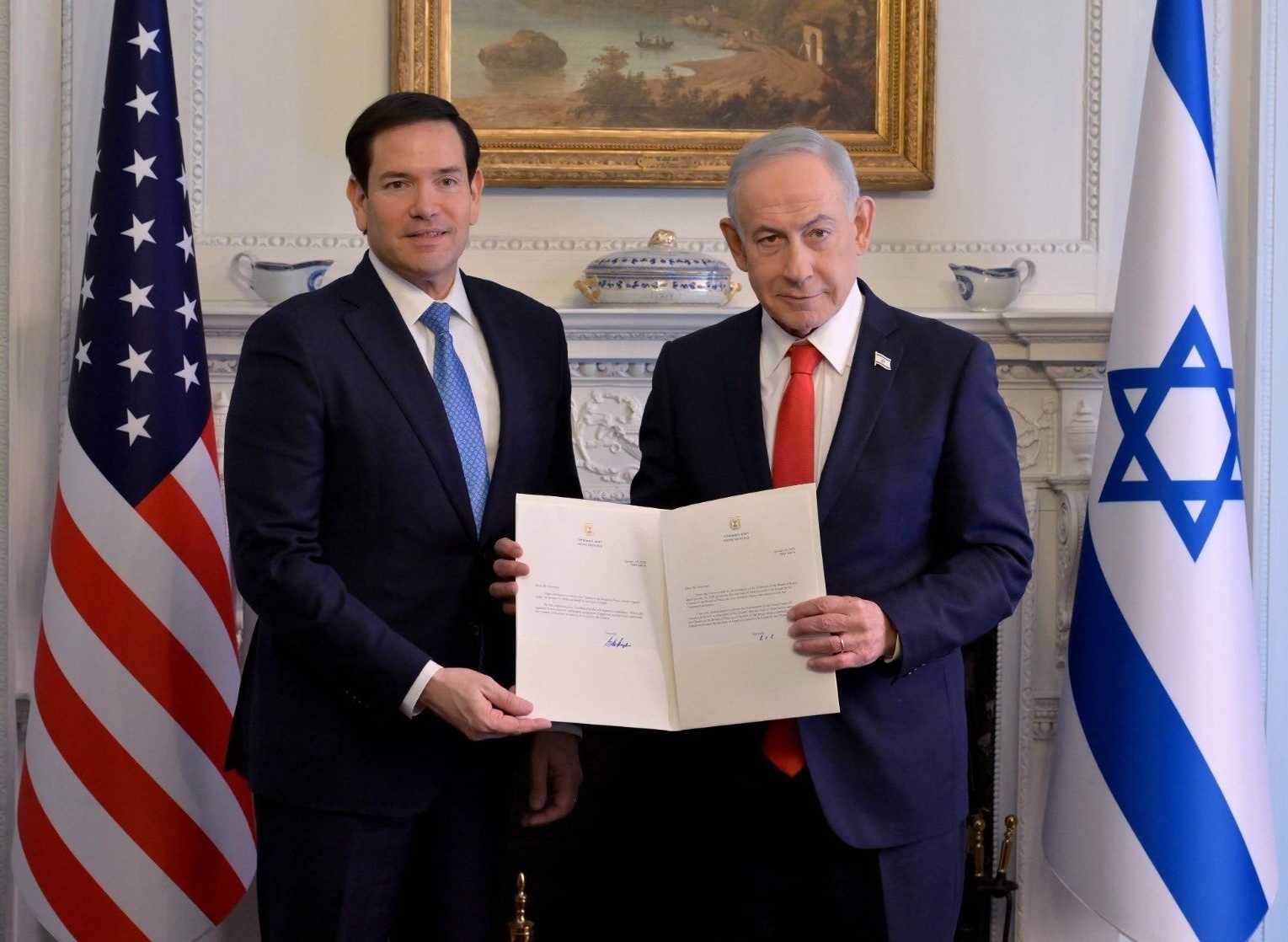 以色列总理 Benjamin Netanyahu 与美国国务卿 Marco Rubio 展示以色列加入「和平委员会」的签署文件,华盛顿特区。2月11日,以色列总理 Netanyahu 时隔1个半月再次访问美国,两国领导人就美伊谈判、加沙问题、中东局势等议题举行约3小时闭门会谈。美国总统 Donald Trump 会晤后在社交媒体发文称「我坚持与伊朗继续谈判,如果达成协议则为优先选择,如果无法达成协议,我们将看到后果」。摄影师:Avi Ohayon