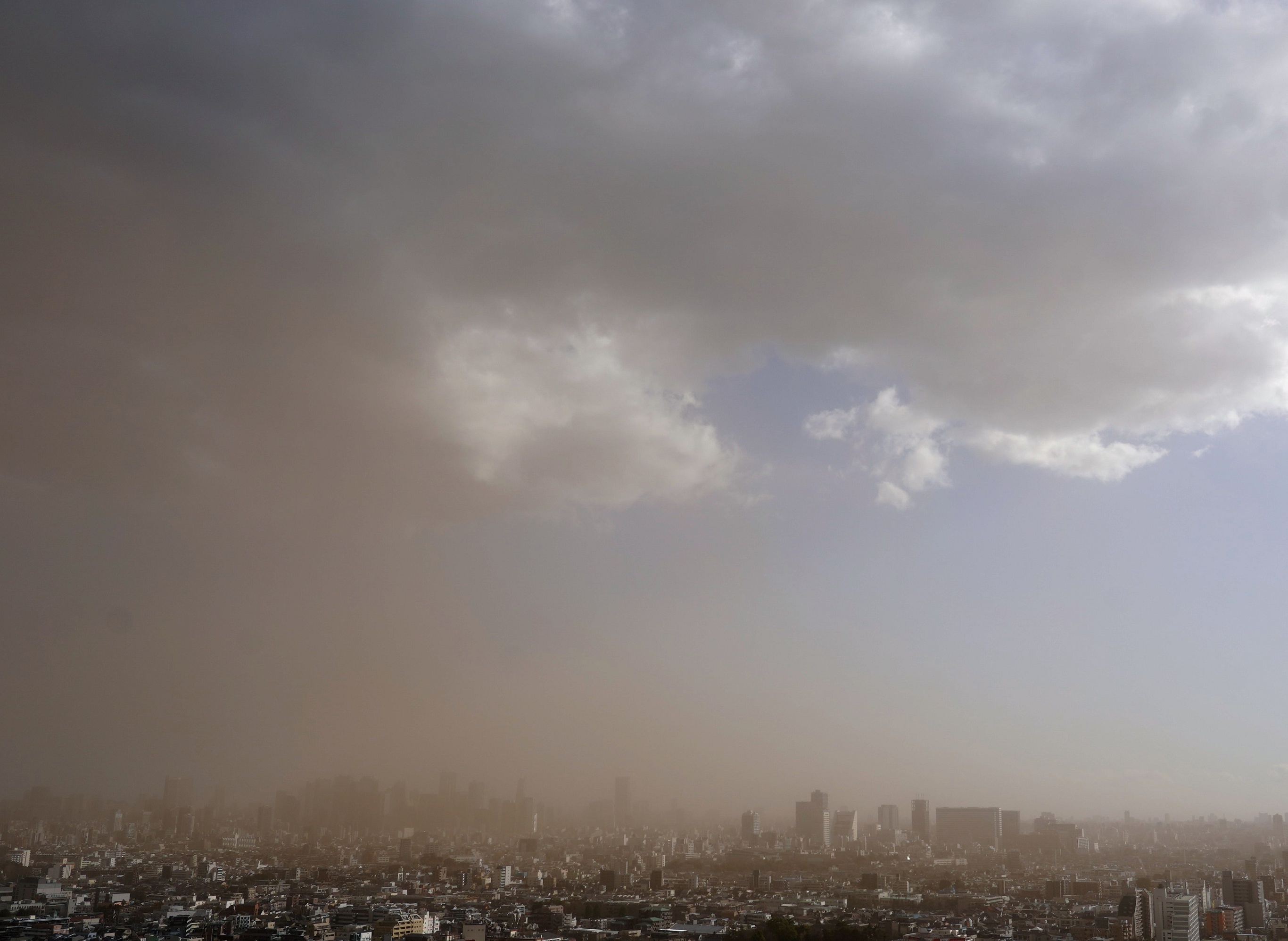 东京市中心上空沙尘弥漫。1月11日,日本关东地区受冬季气压影响出现强风天气,千叶市录得最大风速达27米/秒,东京都地区最大风速达25.8米/秒。由于空气异常干燥,强风扬起尘土导致部分地区出现沙尘暴天气。受恶劣天气状况影响,日本全日空和日航等主要航空公司共计取消至少101个航班,影响超过4700人出行。日本气象厅预计1月13日日本海沿岸将持续受到暴风雪影响,敦促居民注意防范停电、雪崩、雷击等灾害。摄影师:iDaily Media