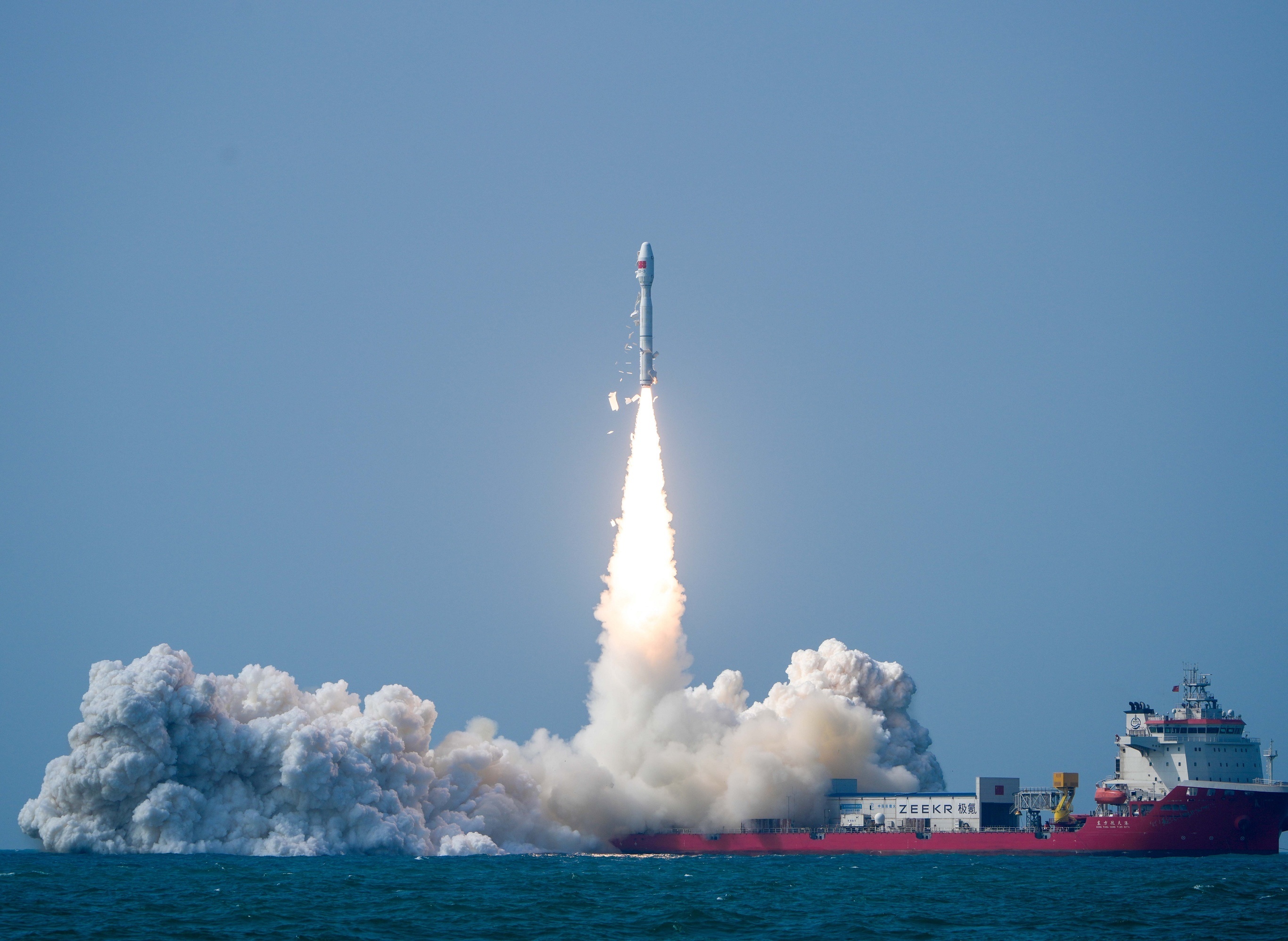 中国「捷龙三号」遥九运载火箭从海上平台发射升空,广东阳江。2月11日,中国航天科技集团「捷龙三号」火箭执行「一箭7星」海上发射任务,成功将巴基斯坦「PRSC-EO2」卫星、港中大一号卫星、电力红外卫星A星、数天宇星03-05星、空间环境监测卫星共7颗卫星送入预定轨道。这是捷龙三号火箭第2次执行国际商业发射任务,「PRSC-EO2」卫星是巴基斯坦空间遥感卫星星座的第2颗卫星,搭载高分辨率光学载荷,主要用于土地测绘、农业评估、城乡规划、自然灾害监测管理等领域。摄影师:iDaily Media