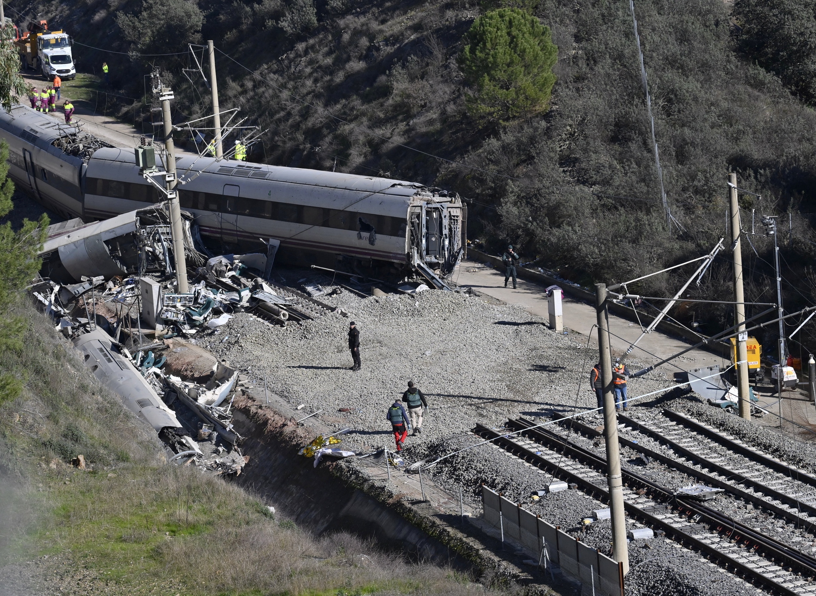 西班牙高速列车脱轨相撞事故现场,科尔多瓦省。1月18日,西班牙南部科尔多瓦省发生一起严重高铁列车脱轨相撞事故,发生撞击的2列高铁共有约480名乘客,目前确认至少42人死亡,123人受伤。初步调查显示2列相撞列车均未超速行驶,推测事故原因与铁轨焊接缺陷有关。这是西班牙自2013年以来最严重的一起列车事故,西班牙政府已宣布全国哀悼三天。西班牙拥有仅次于中国的世界第二大高速铁路网络,总里程达4000公里。摄影师:Burak Akbulut