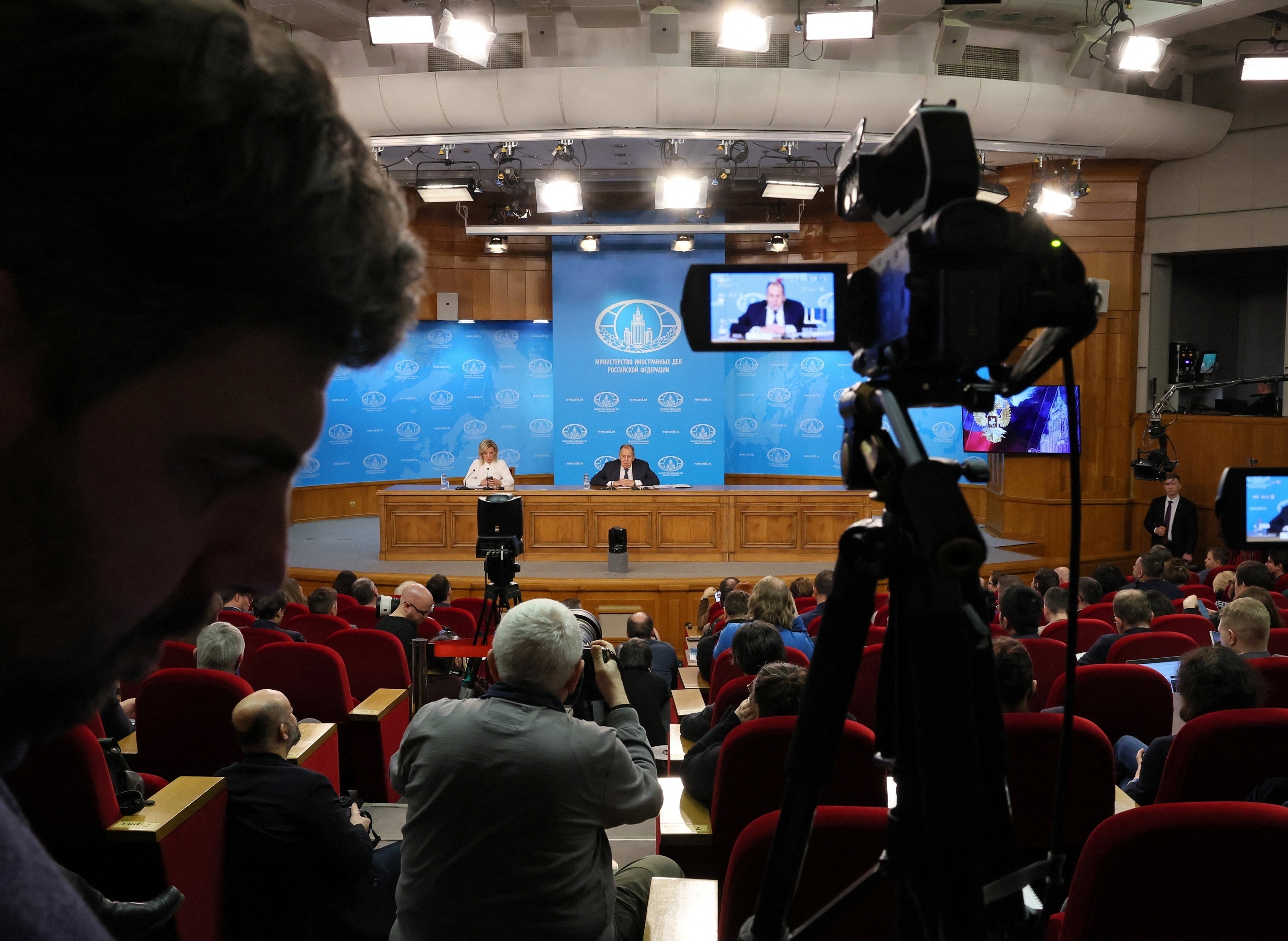 俄罗斯外交部长 Sergei Lavrov 举行2025年外交工作成果新闻发布会,莫斯科。1月20日,俄外长 Lavrov 在年度记者会上总结2025年外交工作成果并就国际局势作出评论。Lavrov 指出世界秩序正在经历一场深刻的变革,西方国家已放弃其所构建的「基于规则的秩序」,新一轮博弈基于「强权即公理」的原则。他表示俄中关系在深度、水平以及契合度方面都达到前所未有的高度,俄罗斯将继续深化与中国及金砖国家的合作,并致力于强化多边外交框架下的睦邻友好关系。Lavrov 强调俄罗斯仍然致力于通过外交途径解决乌克兰危机,前提是必须解决危机的根源。摄影师:Shamil Zhumatov