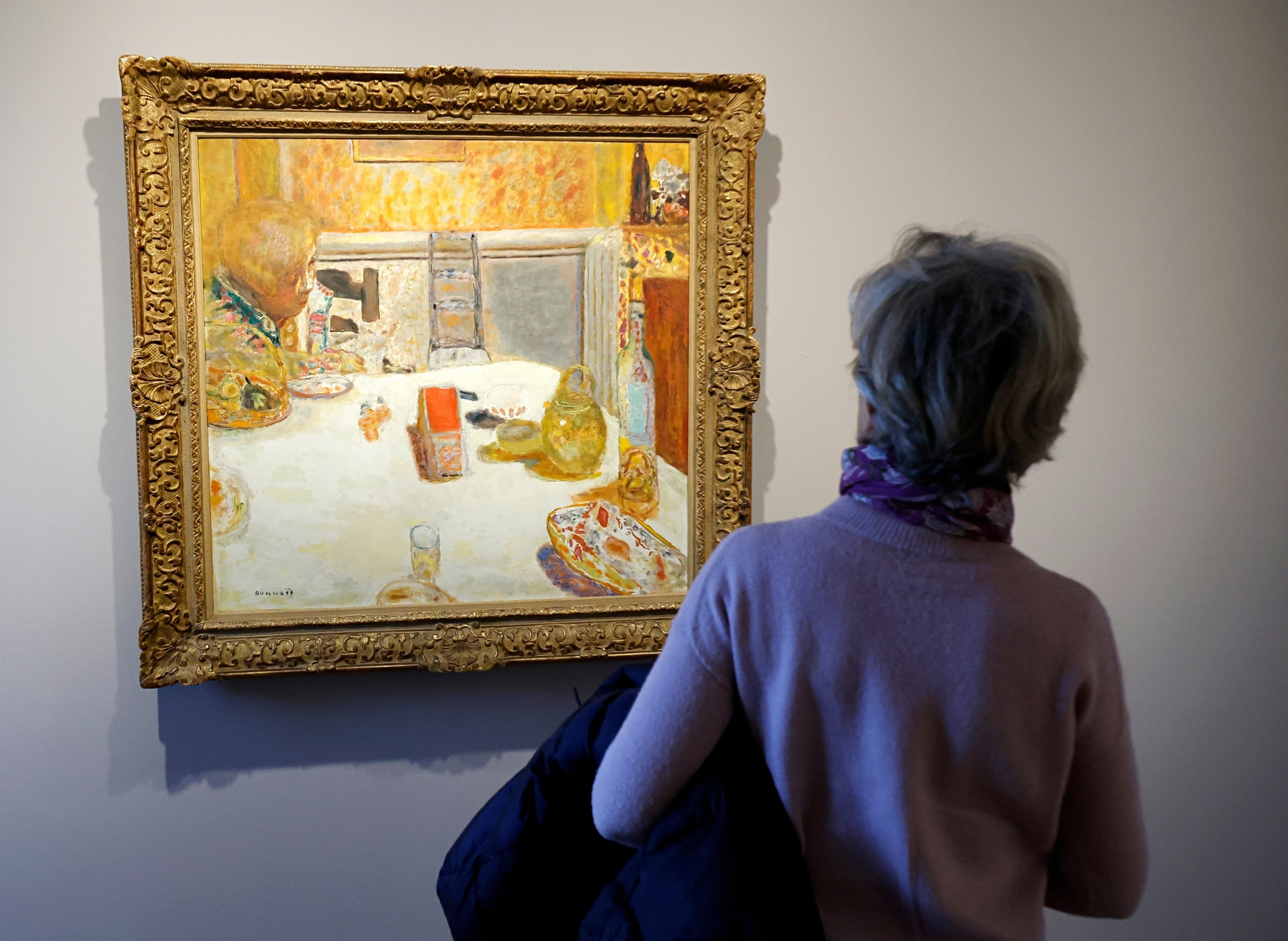 法国博纳尔博物馆举办 Pierre Bonnard 回顾展,一幅画家1932年创作的油画《勒卡内的用餐室》正在展出,勒卡内。本次展览聚焦法国后印象派画家 Pierre Bonnard 在勒卡内生活期间创作的绘画,核心展品为蓬皮杜中心借展的《带含羞草风景的工作室》,通过油画、素描及档案,展现这位艺术家对构图、色彩和光线的独特运用。展期持续至5月31日。摄影师:Sebastien Nogier