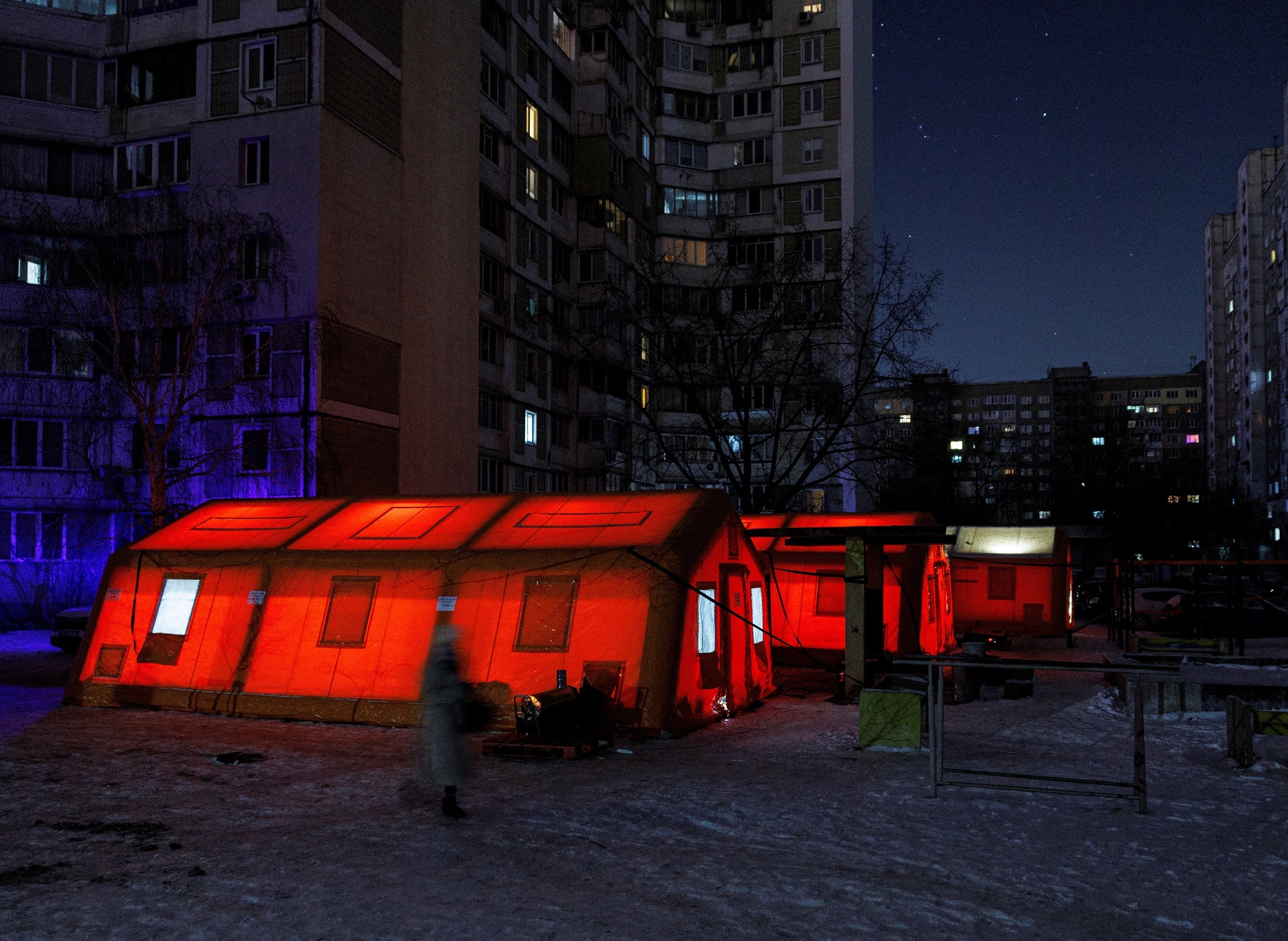 基辅居民在紧急取暖帐篷里避寒,乌克兰。1月13日,俄军对乌克兰境内的能源设施发动大规模无人机和导弹袭击,导致多地电力、供暖和供水系统大面积瘫痪。基辅市约70%区域陷入停电状态,超过470栋高层建筑供暖中断,部分公共交通停止运营。当天基辅最高气温仅零下-10°C,预计未来几天气温将进一步下降。联合国数据显示俄乌冲突迄今已造成至少1.49万平民死亡、逾4万人受伤,乌克兰境内约1080万人亟需人道主义援助。摄影师:Valentyn Ogirenko