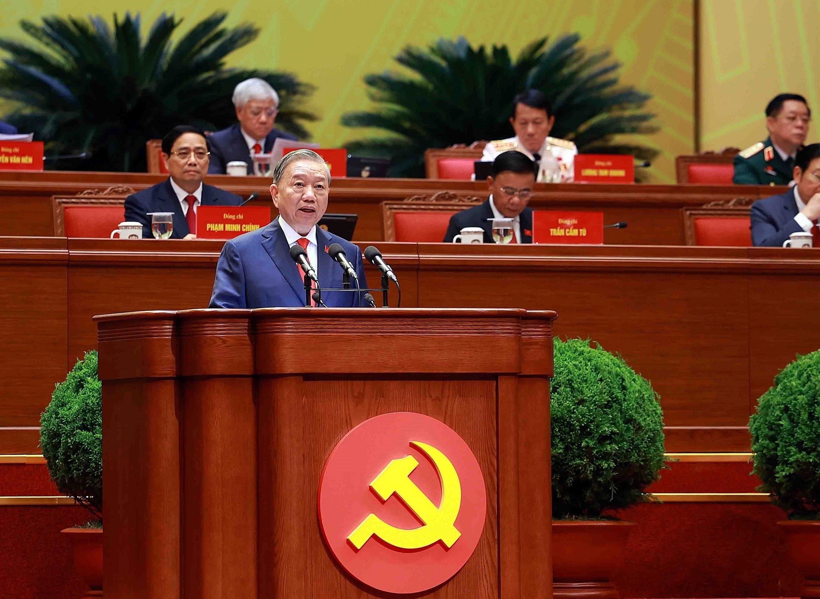 越共中央总书记苏林在越共十四大开幕式上发表讲话,河内。1月20日,越南共产党第十四次全国代表大会正式开幕,共有1586名代表出席,会期持续至1月25日。本次大会的主要议程包括选举新一届越南共产党领导人、制定未来5年国家发展目标等。越共总书记苏林在讲话中表示,该国目标未来5年 GDP 增长率达到10%以上,至2030年人均 GDP 达到8500美元,跻身中等偏上收入国家行列,至2045年成为高收入发达国家。2025年越南 GDP 总值达到5140亿美元,增长率为8.02%。摄影师:VNA