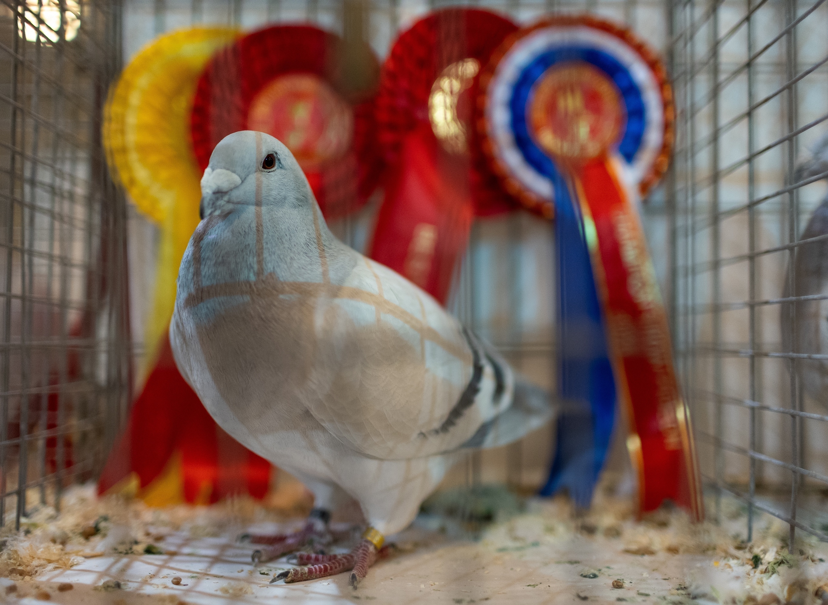 第54届英国信鸽世界年度展(BHW Show of the Year),一只获得组别冠军的雄鸽正在展出,布莱克浦。1月17日,英国国际信鸽展在布莱克浦冬季花园剧院举行,本届共展出超过1500只信鸽,并举行信鸽比赛、电影放映和拍卖会等活动,所有收入将用于支持慈善事业。英国国际信鸽展由英国皇家赛鸽协会创立于1972年,是欧洲地区规模最大的国际鸽展,每年吸引约2.5万人参加。摄影师:Adam Vaughan