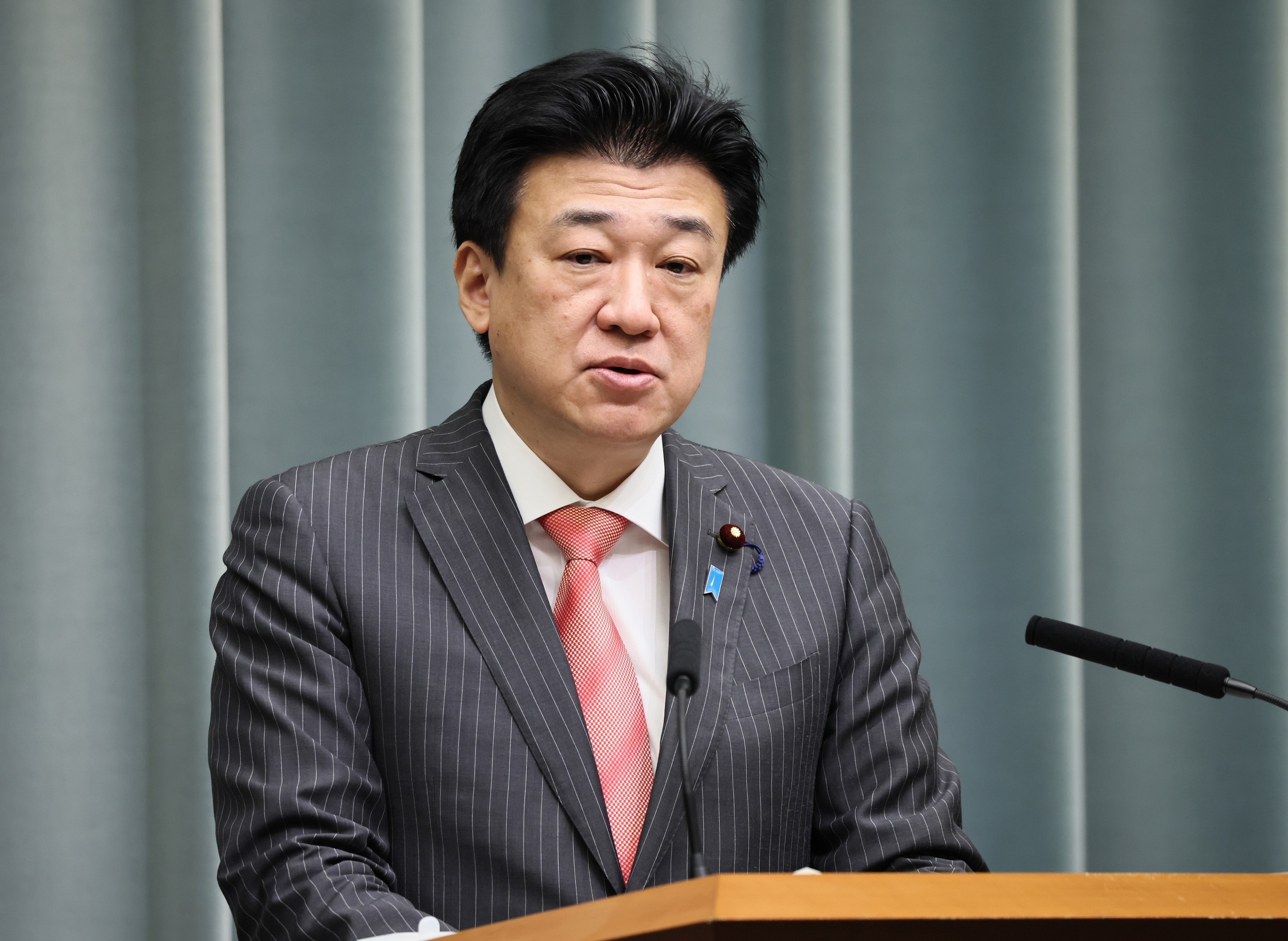 日本内阁官房长官木原稔出席记者会,东京。1月8日,日本外务省针对中国加强两用物项对日出口管制向中国驻日大使提出强烈抗议,要求撤回该措施。中国驻日大使馆表示,中方驳回了日方要求。中国商务部于1月6日宣布即日起禁止所有两用物项对日本军事用户用途出口,共涉及846种相关物项,包括稀土、化学品、电子设备、航空航天相关制品等。中国商务部表示,中方加强两用物项对日出口管制的目的是制止日本「再军事化」和拥核企图,完全正当、合理、合法,涉及民事用途的不会因此受到影响。摄影师:iDaily Media