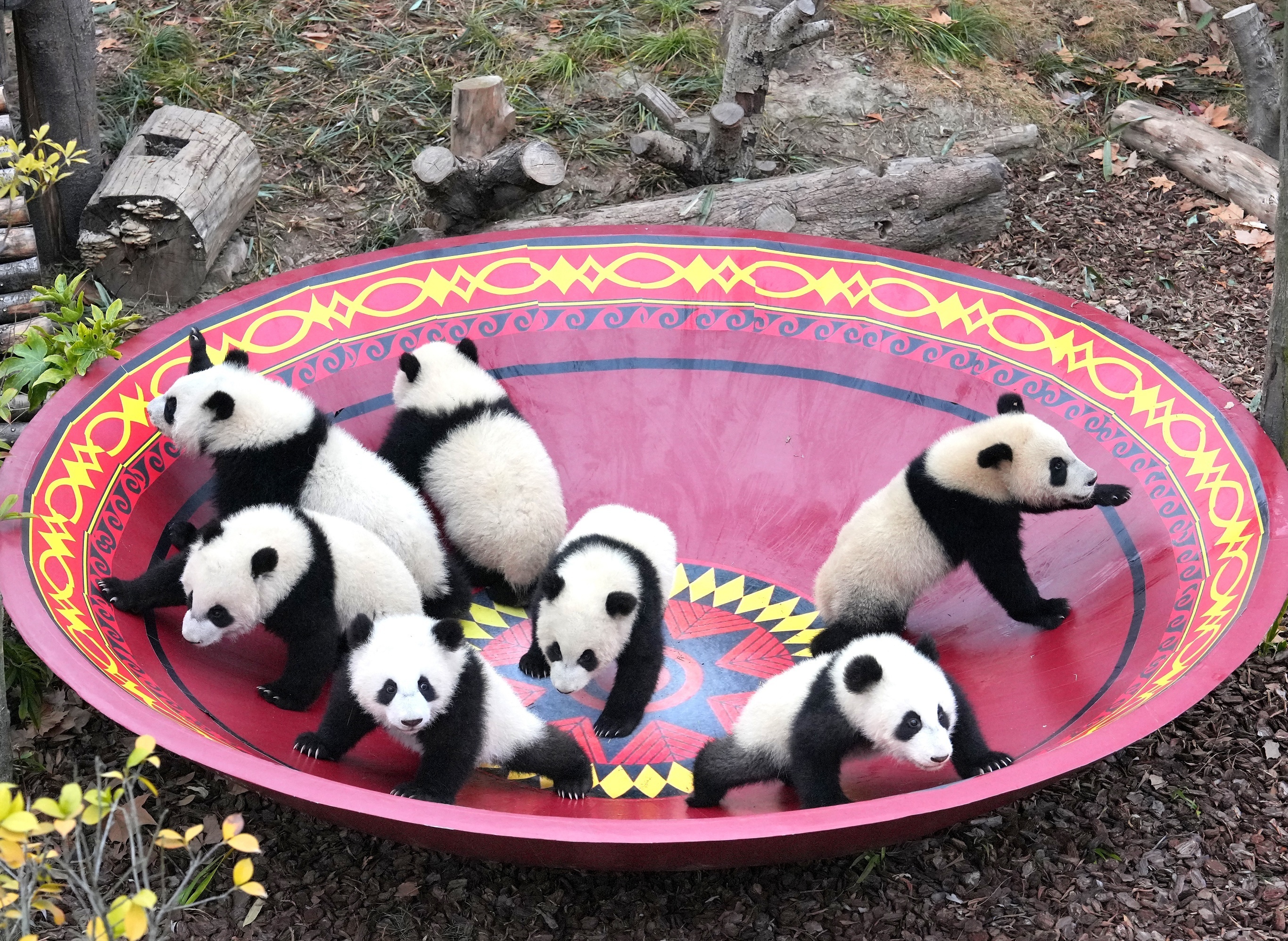 成都大熊猫繁育研究基地2025级大熊猫宝宝集体亮相,四川省。2月11日,中国大熊猫保护研究中心和成都大熊猫繁育研究基地举办新春活动,集中展示总计30只2025年新生大熊猫幼崽。这2家大熊猫繁育机构2025年共成功繁育大熊猫幼崽45只,其中包括14对双胞胎,所有幼崽均发育良好。中国国家林草局数据显示目前全球大熊猫圈养种群数量超过800只,野外种群数量增至近1900只。摄影师:An Yuan