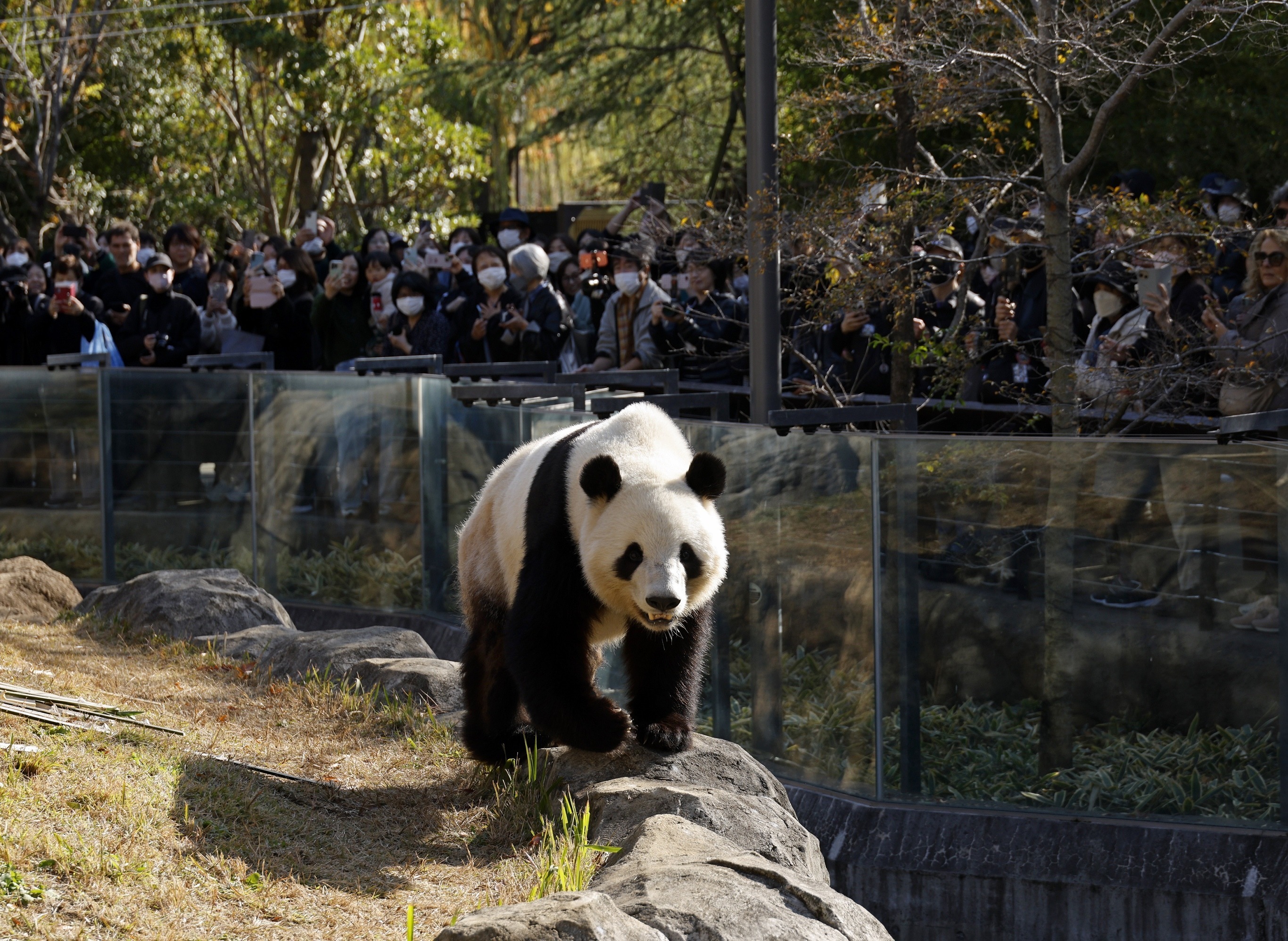游客们排队参观旅日大熊猫「晓晓」,东京上野动物园。大熊猫「晓晓」和「蕾蕾」于2021年6月出生在东京上野动物园,是目前日本境内最后2只旅日大熊猫,根据中日租借协议,这对大熊猫将于2026年2月返回中国,届时日本将出现自1972年中日邦交正常化以来首次境内无大熊猫的局面。受中日关系紧张局势升级影响,中国航空公司11月14日以来已累计取消72条航线共计904架次赴日航班,相当于15.6万个座位,占赴日航班总数的16%。摄影师:Franck Robichon