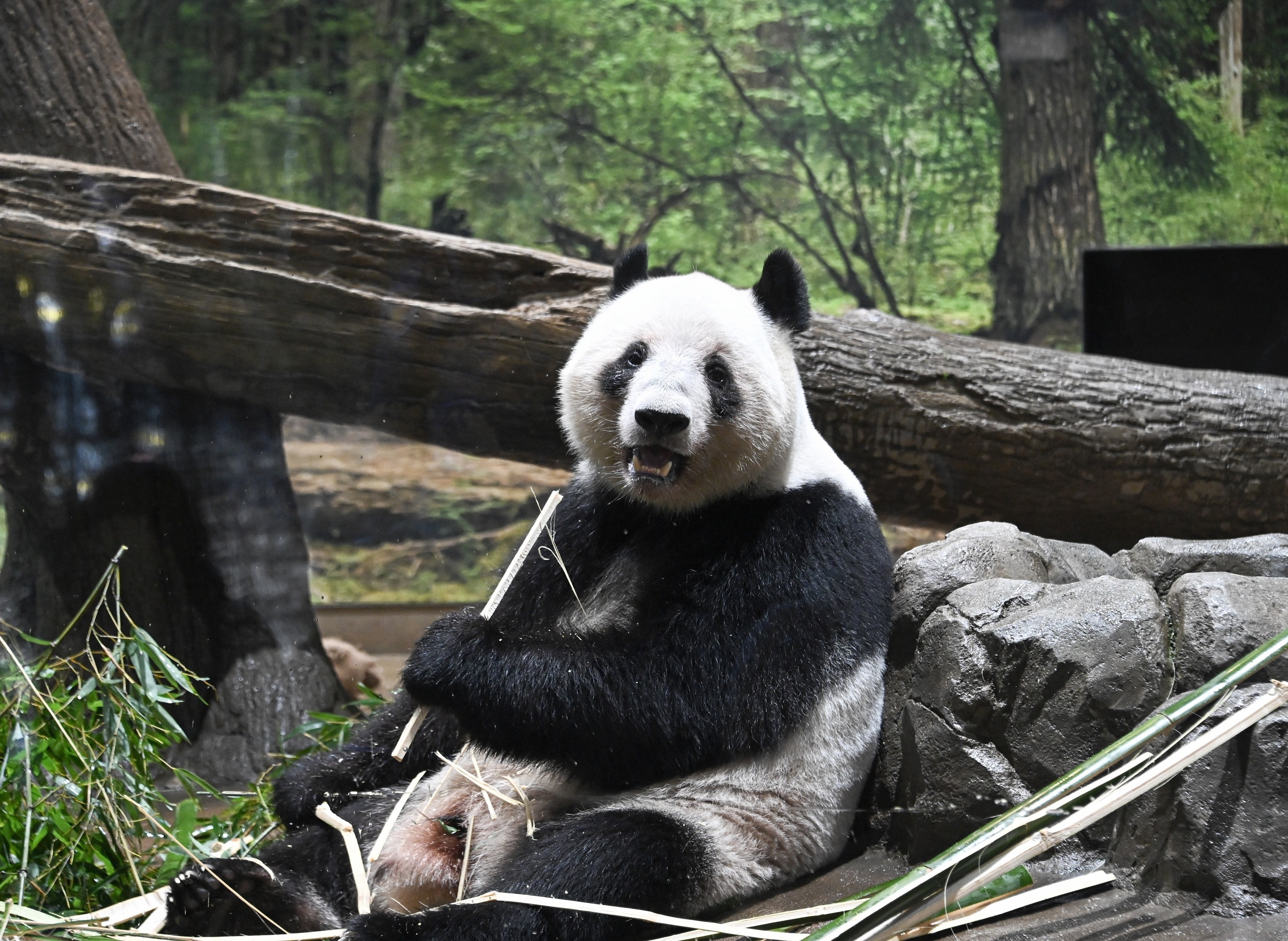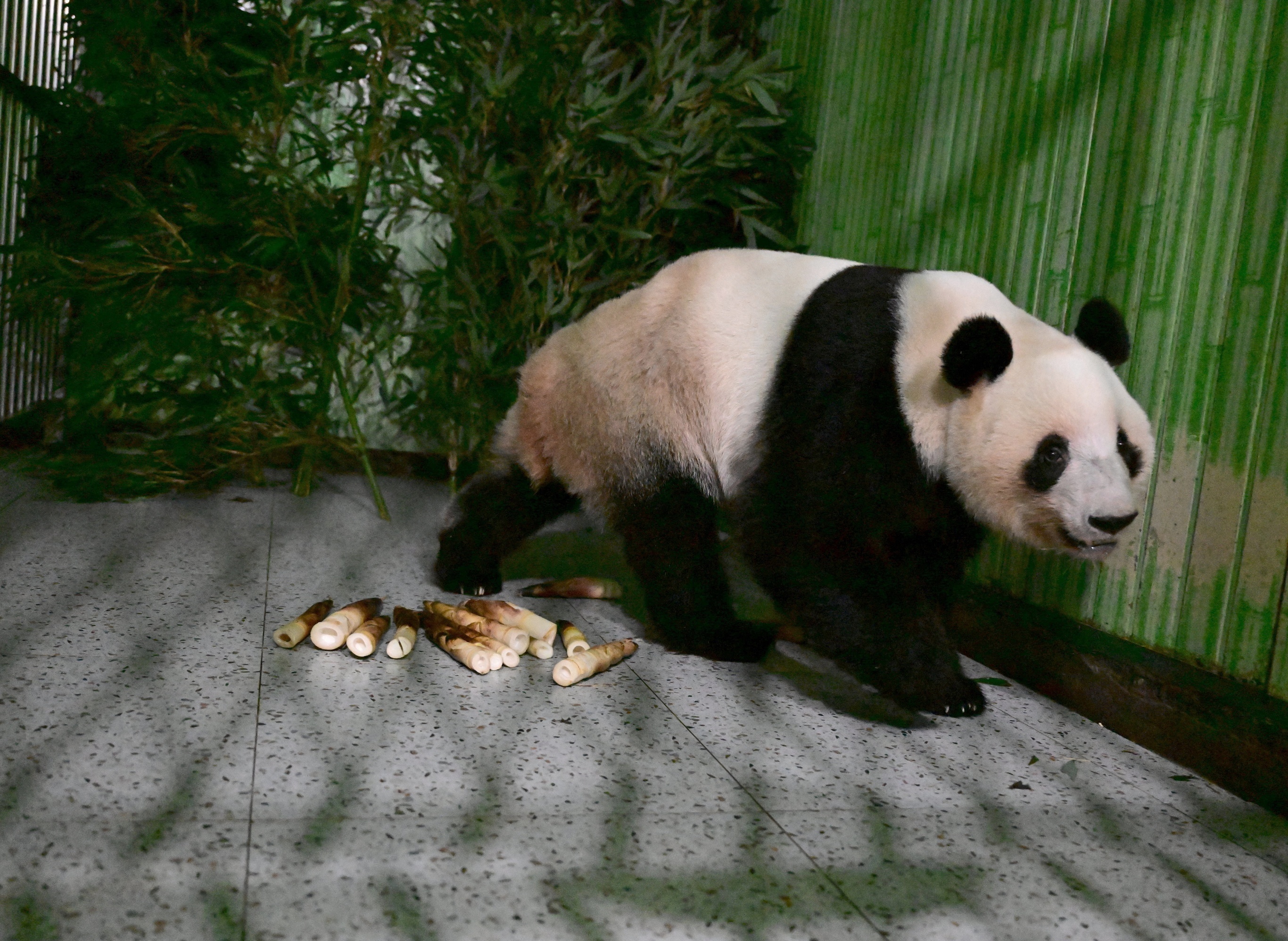 东京上野动物园,旅日雌性大熊猫「蕾蕾」正在吃竹子。1月25日,东京上野动物园的大熊猫龙凤胎「晓晓」和「蕾蕾」在返回中国前最后一天向日本公众展出,当天共有4400名抽签选中的日本民众进入大熊猫馆参观,申请中签率仅为4%。这对大熊猫将于1月27日启程返回中国,届时日本将出现自1972年中日邦交正常化以来首次境内无大熊猫的状况。摄影师:Soichiro Koriyama