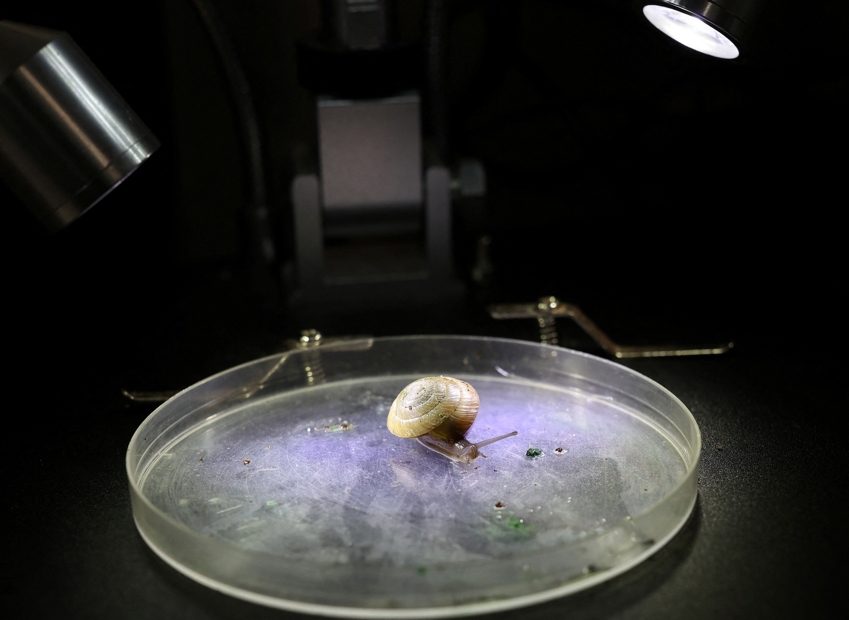 英国切斯特动物园展示一只新繁育的「大百慕大陆地蜗牛」(greater Bermuda snail)。2月7日,英国切斯特动物园宣布经过与伦敦动物园、百慕大本土团队的多年合作努力,成功为「大百慕大陆地蜗牛」建立稳定的野外种群,让该物种摆脱了灭绝的威胁。「大百慕大陆地蜗牛」为百慕大群岛的特有蜗牛物种,演化史可追溯至100万年前,曾一度被认为已灭绝。英国切斯特动物园的保育专家从2019年开始通过人工繁育方式为该物种建立野放种群,迄今规模已超过10万只。摄影师:Darren Staples