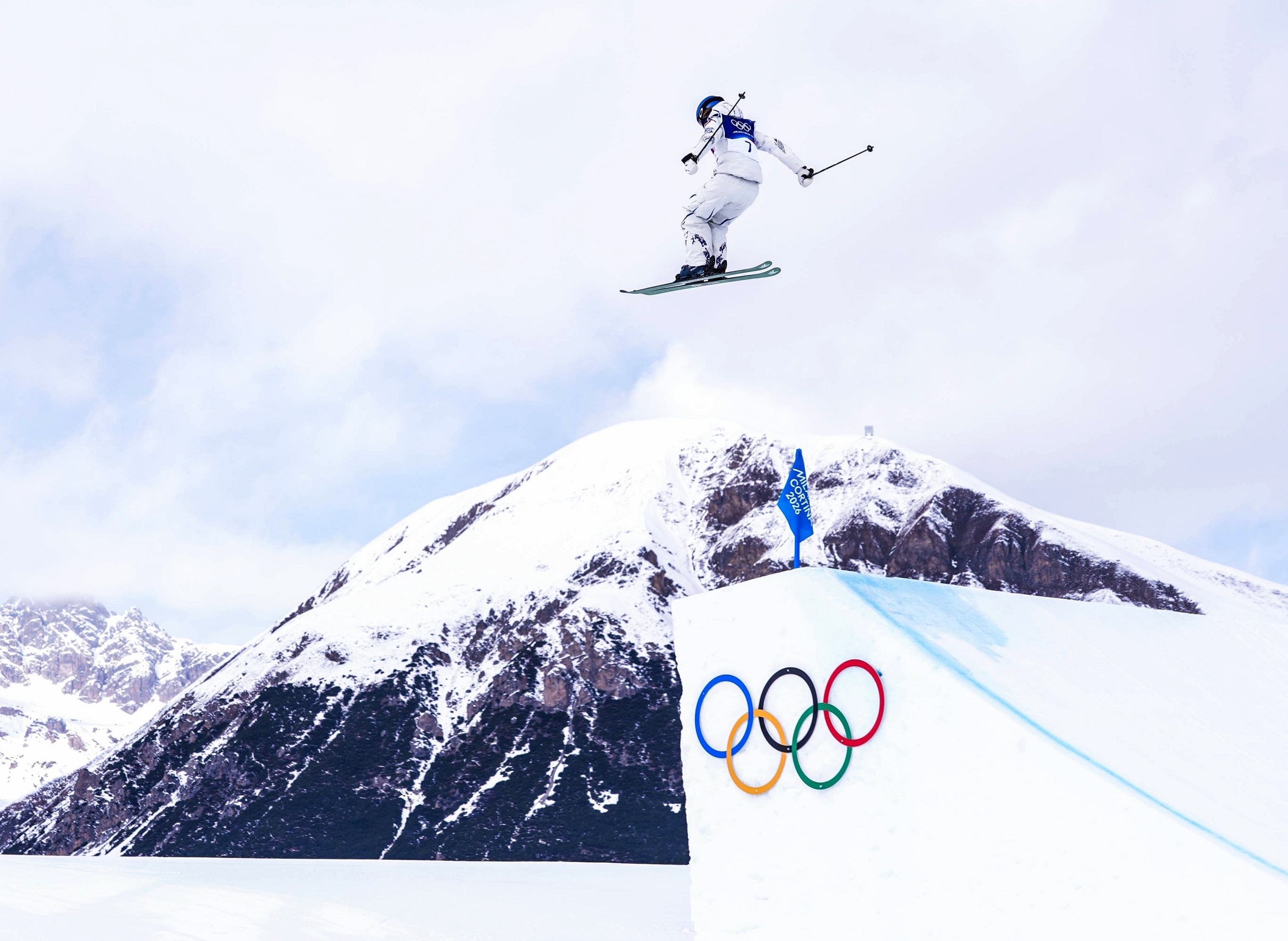 2026年米兰-科尔蒂纳冬奥会自由式滑雪女子坡面障碍技巧决赛,中国选手谷爱凌正在完成空中动作。2月9日,中国选手谷爱凌以0.38分微弱劣势获得自由式滑雪女子坡面障碍技巧赛亚军,为中国队赢得本届冬奥会首枚银牌。谷爱凌在决赛首轮以高难度动作斩获全场最高的86.58分,后续两轮因失误未能提升分数。瑞士选手 Mathilde Grémaud 以86.96分获得金牌,加拿大选手 Megan Oldham 以76.46分获得铜牌。摄影师:Jari Pestelacci