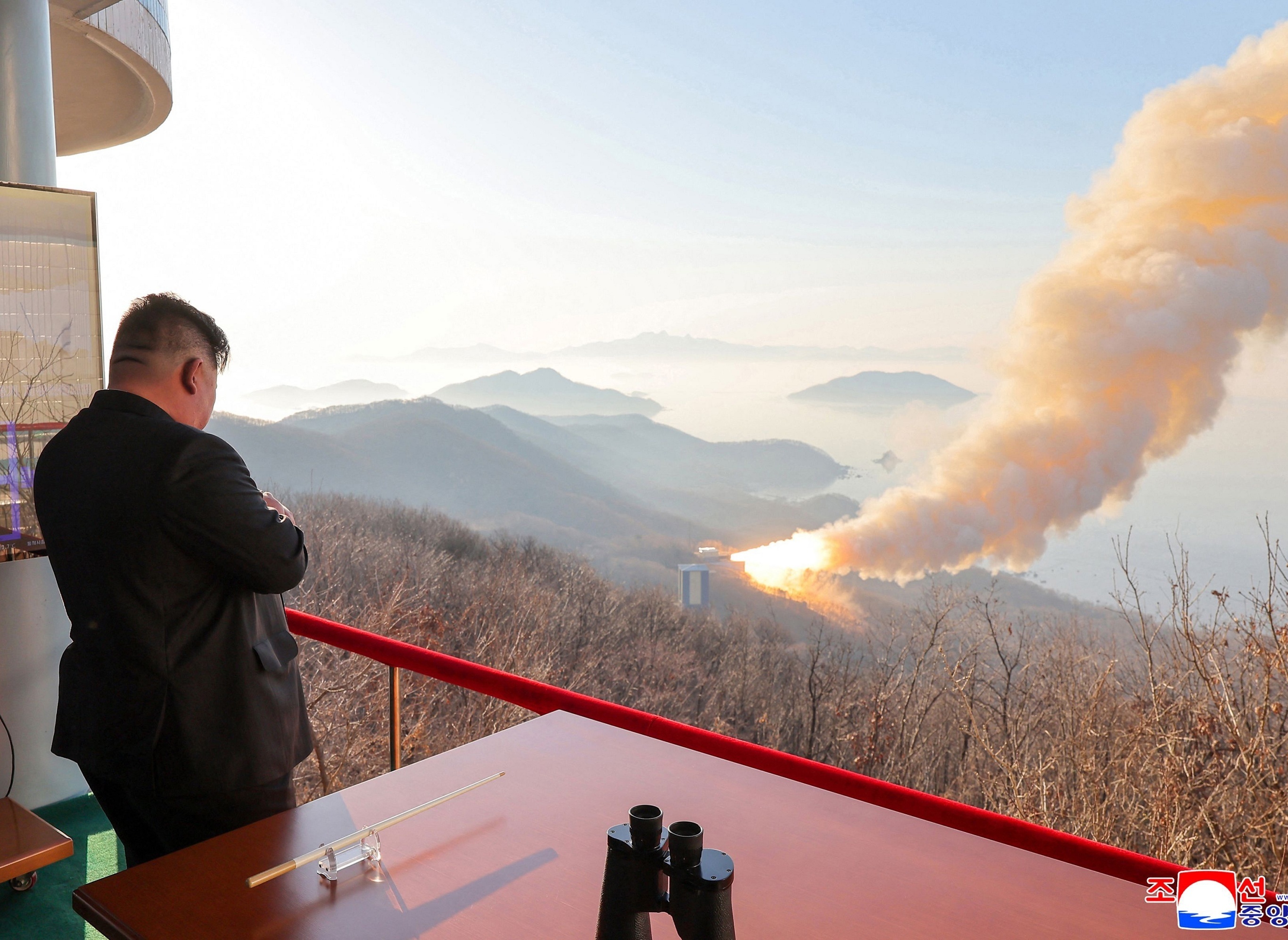 朝鲜最高领导人金正恩观摩新型固体燃料发动机地面点火试验。3月29日,朝中社报道称朝鲜成功进行高推力固体燃料发动机点火试验,发动机最大推力达到2500千牛,比前一代高出约26%。韩国媒体推测该发动机可能用于朝鲜正在研发的「火星-20」型洲际弹道导弹。朝鲜领导人金正恩对试验结果表示满意,强调朝鲜的国防建设已进入重要的变革阶段,要求战略武力实现「保质保量」的跃升。摄影师:KCNA