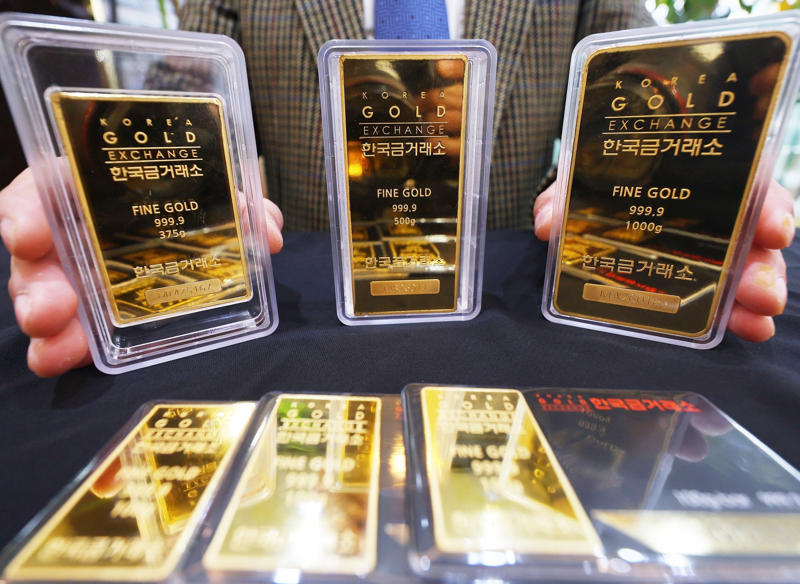 韩国黄金交易所工作人员展示一组金条,首尔。1月26日,国际现货黄金价格首次突破5100美元关口,盘中触及5110.50美元/盎司,创下历史新高。当天铂金价格涨至2918.8美元/盎司,白银价格涨至117.69美元/盎司,均刷新最高纪录。2026年迄今金价累计上涨近18%,主要受地缘政治紧张加剧、各国央行增持黄金等因素推动。高盛估计目前全球央行的月均黄金购买量约为60吨,远高于2022年以前的平均水平17吨。摄影师:iDaily Media