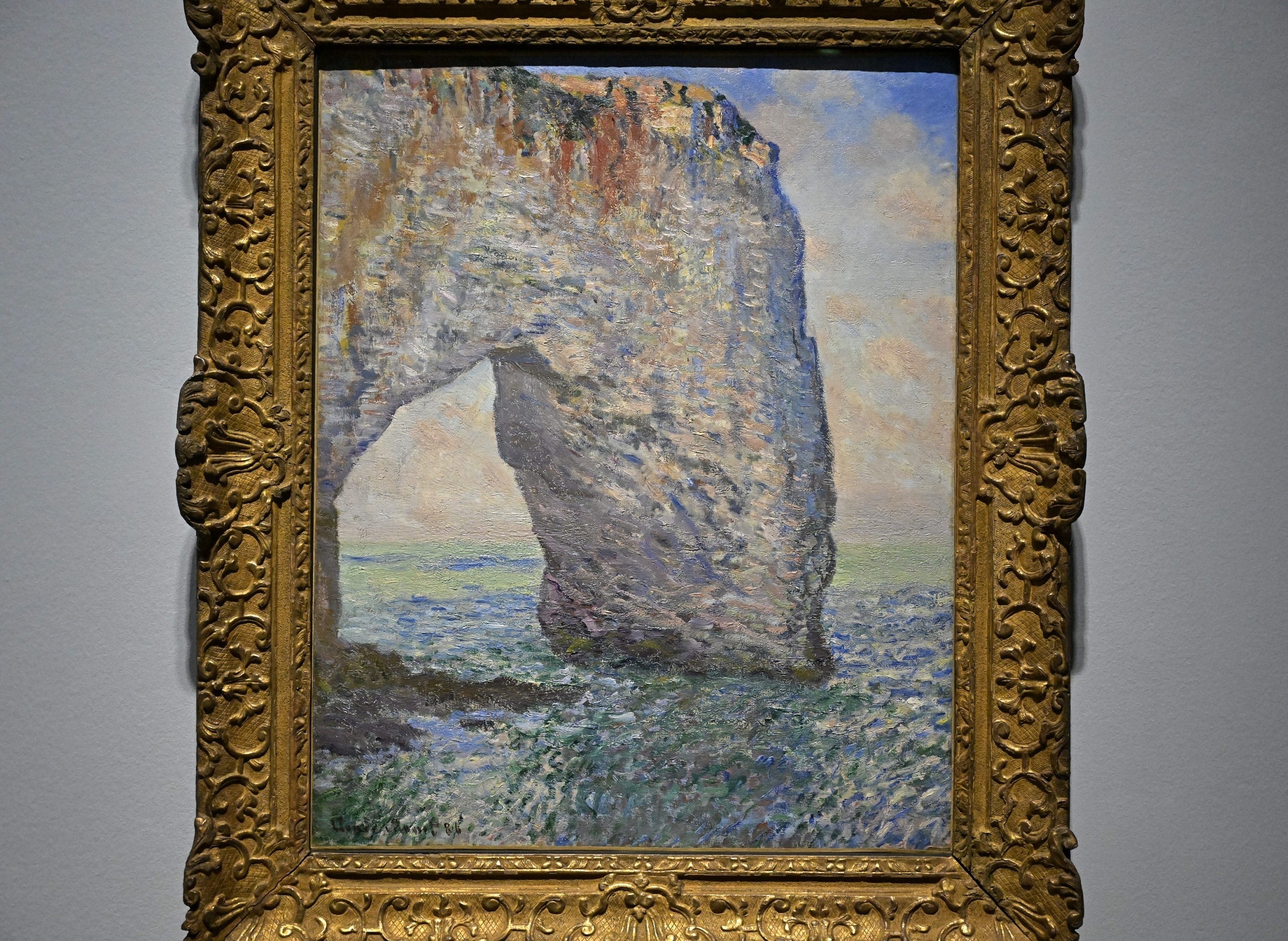 法国里昂美术馆举办「埃特勒塔:库尔贝、莫奈、马蒂斯」专题展,一幅法国印象派画家 Claude Monet 1886年油画《埃特勒塔附近的大岩门》正在展出。本次展览通过绘画、素描、照片和历史档案,向人们展现法国度假胜地「埃特勒塔」从海边渔村变为印象派画家写生胜地的历程,重点展品包括库尔贝的《海浪》、莫奈的《埃特勒塔的汹涌海面》和《午餐》等标志性印象派作品。展期从11月29日持续至2026年3月1日。摄影师:Joël Philippon