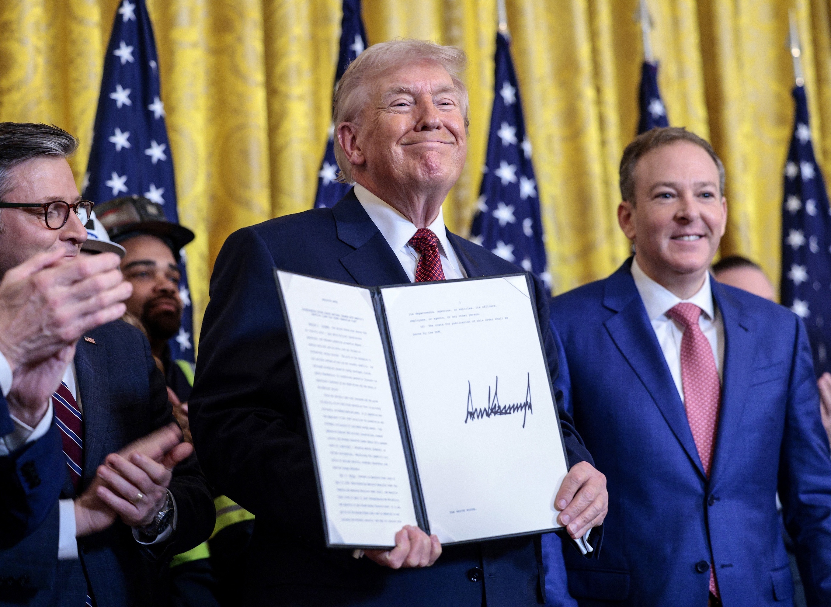 美国总统 Donald Trump 发表撤销「温室气体危害认定」的声明,华盛顿白宫。2月12日,美国总统 Trump 宣布撤销2009年美国环保署发布的「温室气体危害认定」标准,这意味着美国所有温室气体监管政策的法律依据被废除,所有车辆和发动机的气体排放标准被终止。Trump 宣称这是美国历史上规模最大的单项放松管制措施,能够为美国纳税人节省超过1.3万亿美元,让美国家庭购买新车的平均成本下降2400美元。世界气象组织报告显示,2025年为全球有记录以来最暖的年份之一。摄影师:Saul Loeb